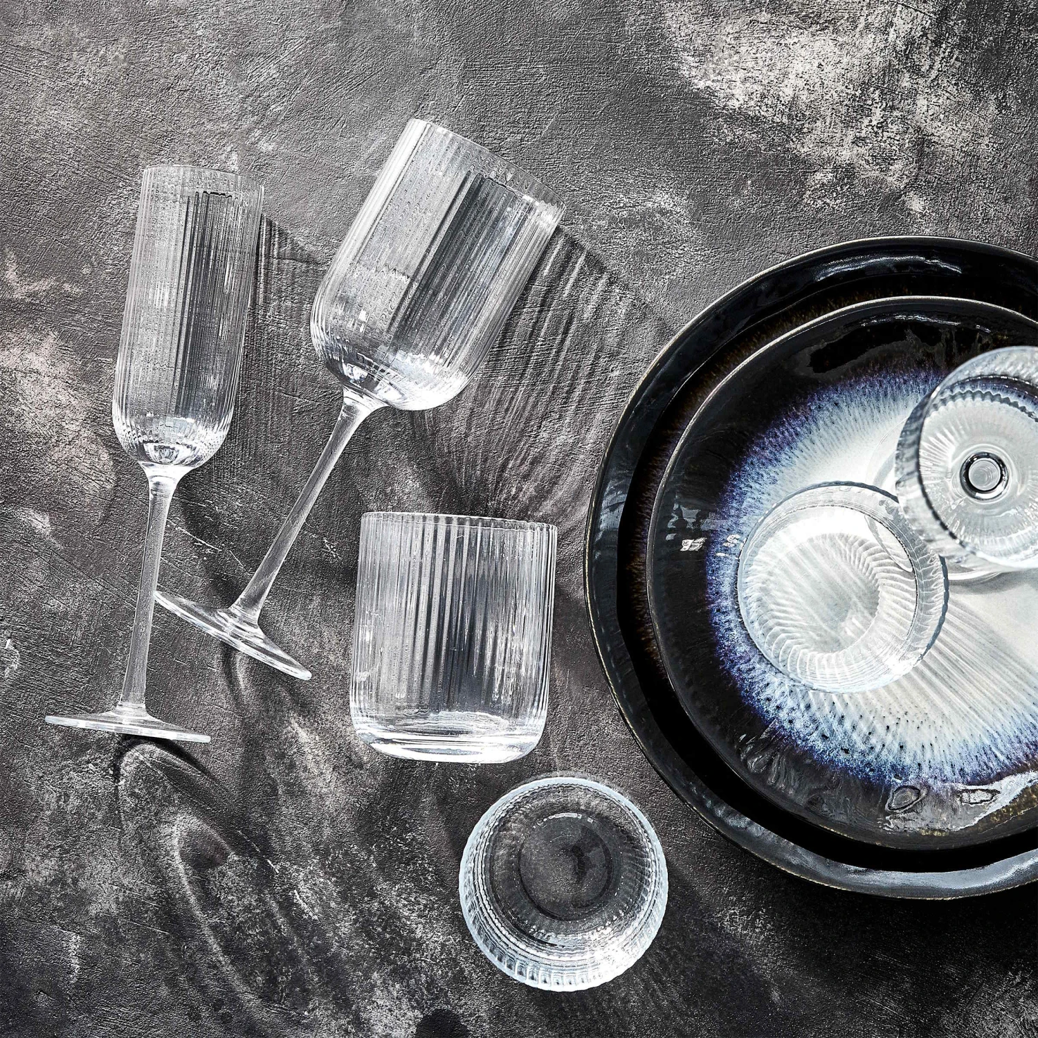 Wenn es einem Glas gelingt, modern und zugleich zeitlos, charakterstark und unaufdringlich zu sein, dann ist es das Baron Weinglas im 4er-Set mit Rillen. Dieses mundgeblasene Glas für Rotwein, Weißwein und Rosé fällt mit seiner geradlinigen Form und den markanten Rillen angenehm ins Auge. Auf dem gedeckten Tisch glänzt es formvollendet bei festlichen Anlässen und dem genussvollen Essen.