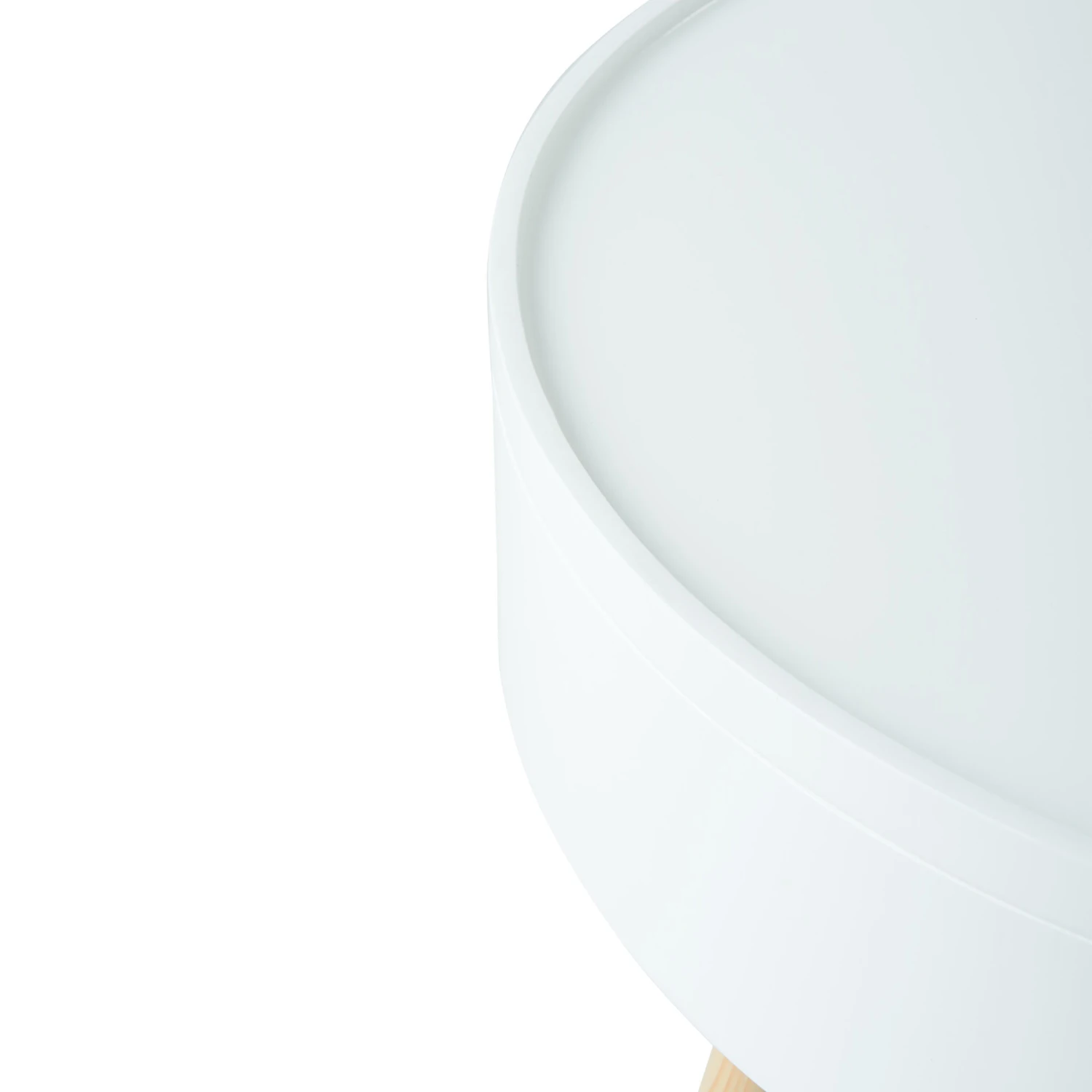 Tisch und Stauraum in einem: Unser komfortabler Coffee Time-Beistelltisch dient Ihnen als schönes Möbelstück mit Ablagefläche und verfügt gleichzeitig über ein platzsparendes wie praktisches Aufbewahrungssystem. Dazu einfach die Tischplatte entfernen. Und schon lassen Sie Zeitschriften, Fernbedienung oder Strickzeug in ihm verschwinden. Für genügend Stabilität sorgen die schrägen Tischbeine aus Pinienholz. Durch die Verwendung heller Farben und klarer Linien erinnert er an skandinavisches Design, was ihn zum zeitgemäßen, stylischen Wohnstück macht.