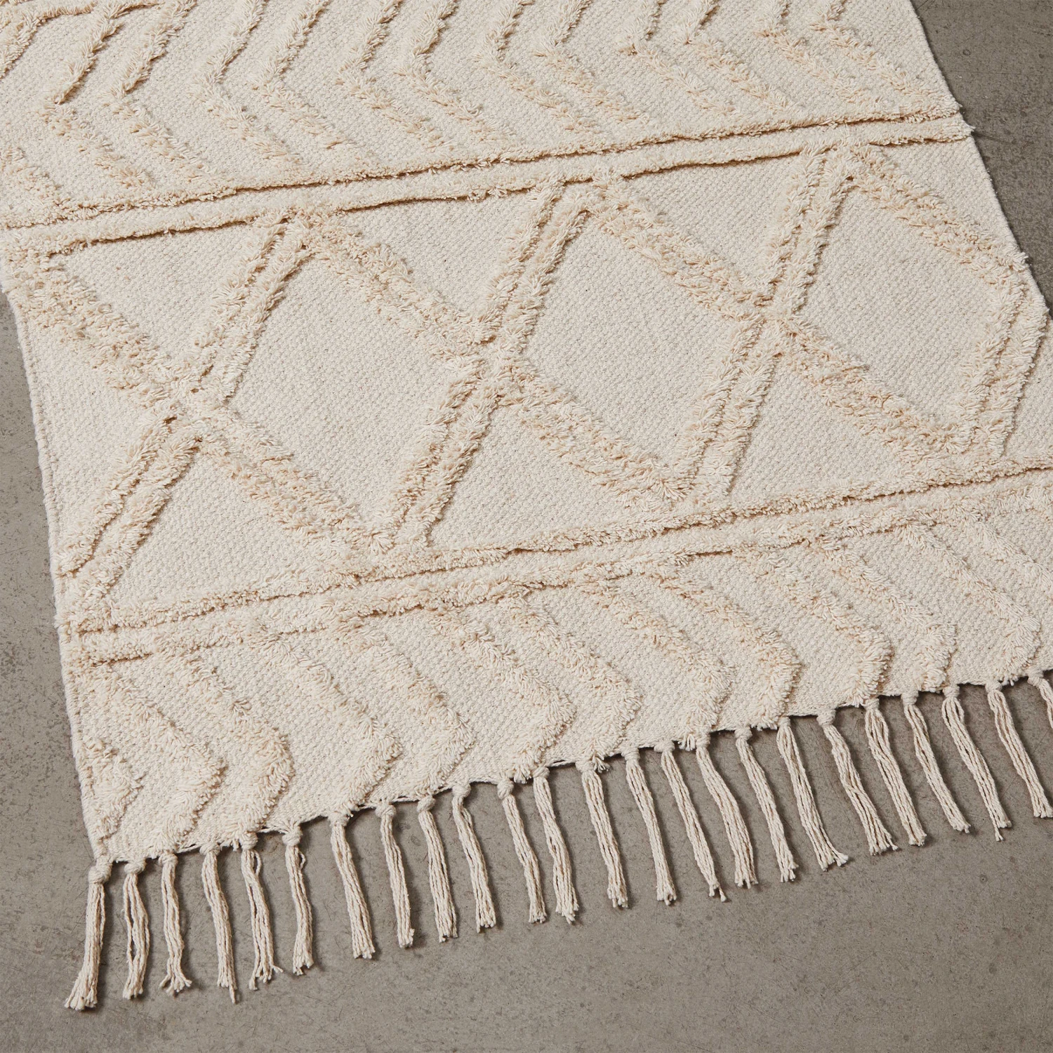 Beim gemütlichen Wohnen führt am handgefertigten Cotton Way Teppich 60 x 90 cm eigentlich kein Weg vorbei. Denn dieser beigefarbene Teppich aus reiner Baumwolle verbreitet Wohnlichkeit mit angesagten Fransen und einem harmonischen Rautenmotiv, das sich in höherem Flor dekorativ abhebt. Das fühlt sich beim Barfußlaufen besonders angenehm an – und sorgt optisch für einen unaufdringlichen, aber raffinierten Effekt. Passender Cotton Way Läufer erhältlich.