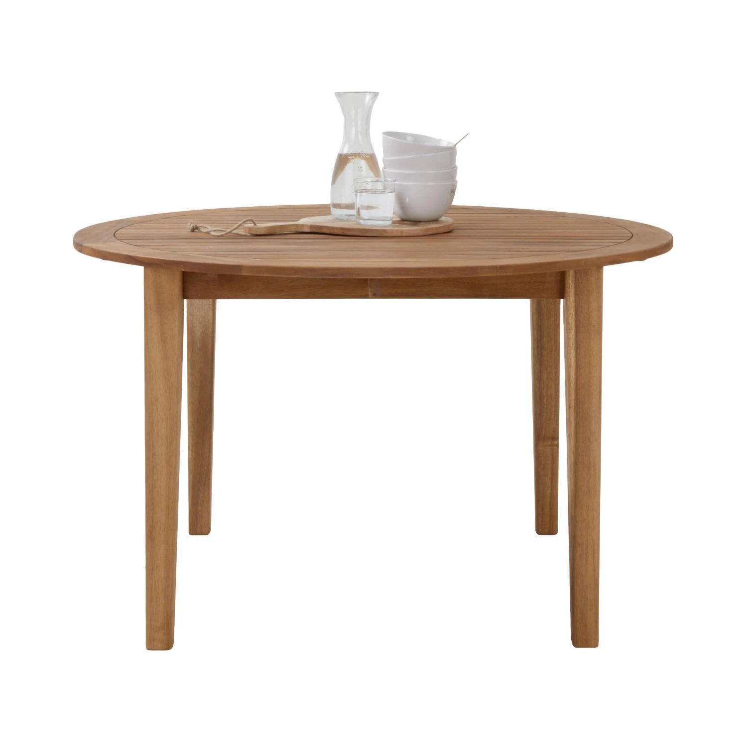 Runde Tische wie der Dinery Tisch aus FSC®-zertifiziertem Akazienholz sind einfach geselliger: Alle haben sich gut im Blick und können wunderbar miteinander kommunizieren. Ein Thema könnte dabei das moderne Design dieses Esstischs sein. Oder sein großzügiger Durchmesser von 120 cm, der genug Platz für ein ausladendes Essen bietet. Oder Sie diskutieren darüber, ob Sie diesen Holztisch lieber auf Balkon oder Terrasse oder in Küche oder Esszimmer aufstellen.