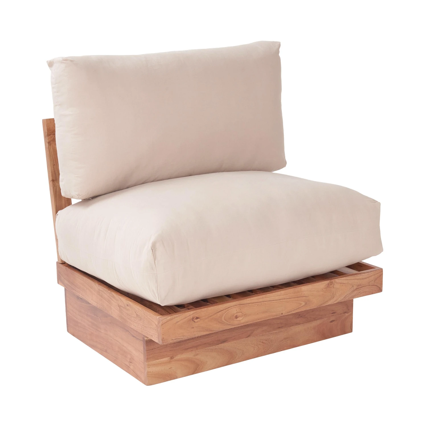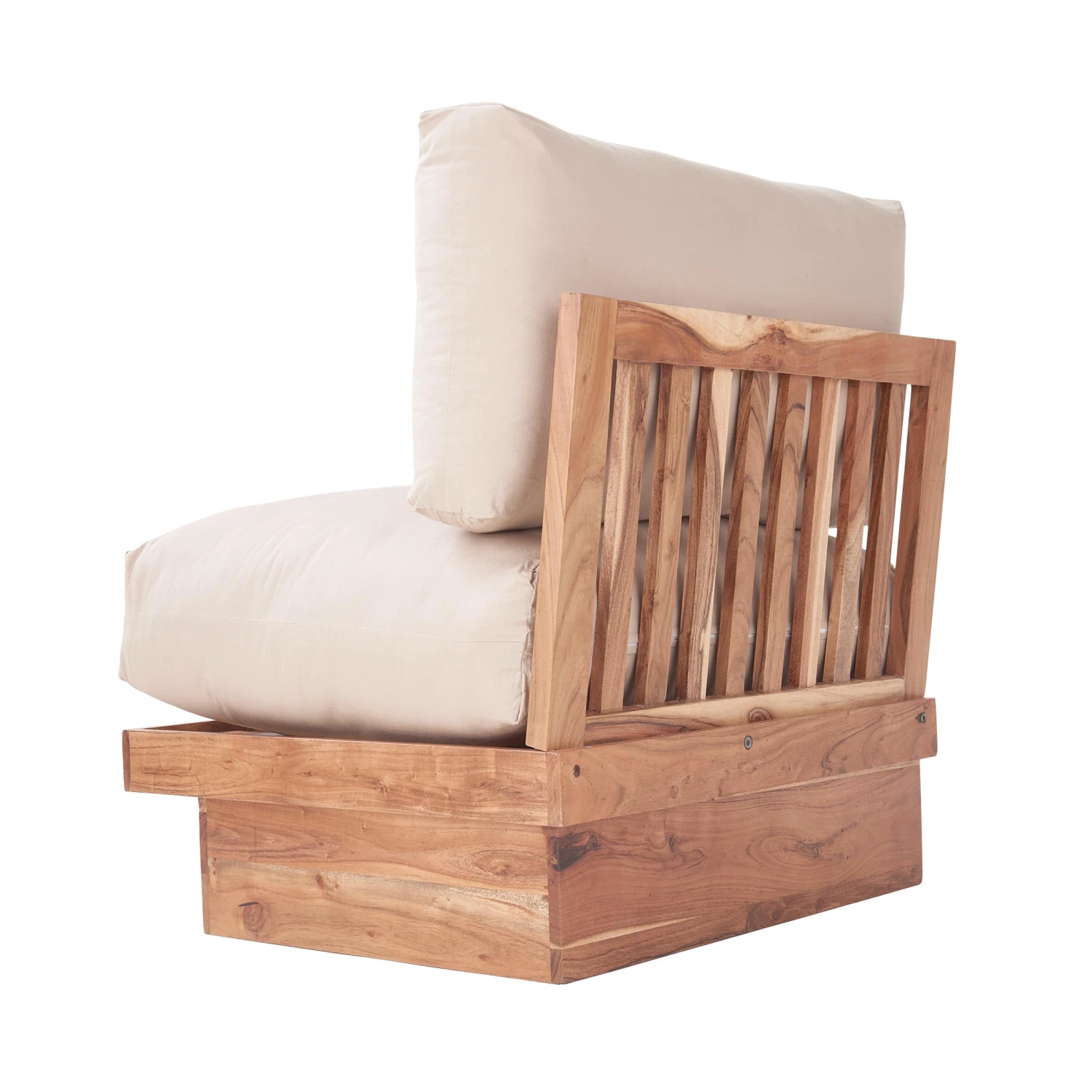 Das könnte Ihnen so passen: Mit dem Dockland Loungesessel gestalten Sie Ihre extra gemütliche Lounge-Ecke nach Ihren Vorstellungen, z.B. auf der überdachten Terrasse. Denn Sessel, Sofa und Couchtisch aus wetterfestem Akazienholz können ganz nach Belieben und vorhandenem Platz über Eck oder in einer Reihe, mit Tisch seitlich oder mittig davor angeordnet werden, natürlich auch im Wintergarten oder Wohnzimmer. So entsteht eine lässige Wohnlandschaft, die mit extra dicken, weichen Kissen richtig Lust darauf macht, lange Abende und ganze Wochenenden einfach nur zu faulenzen.