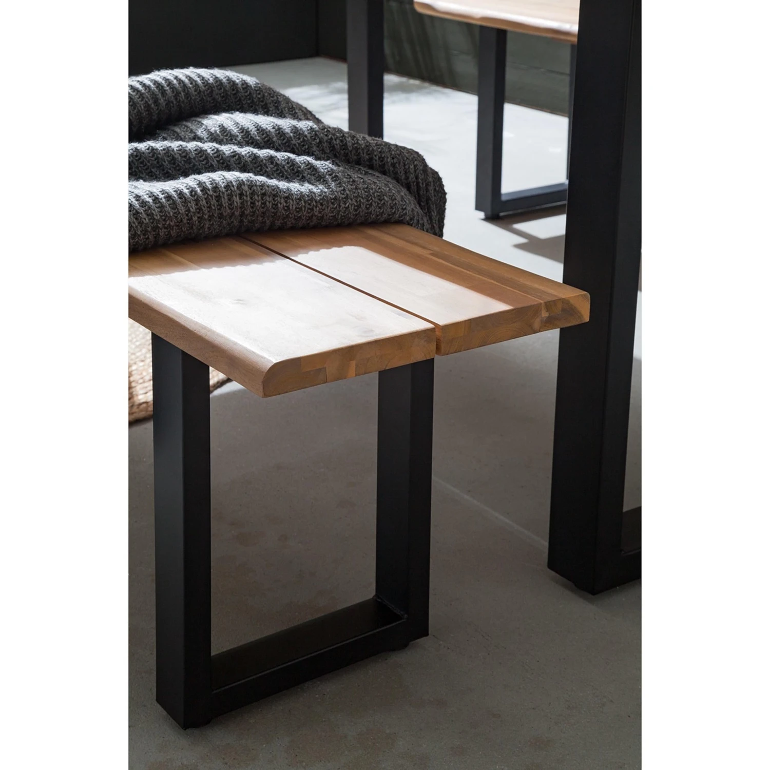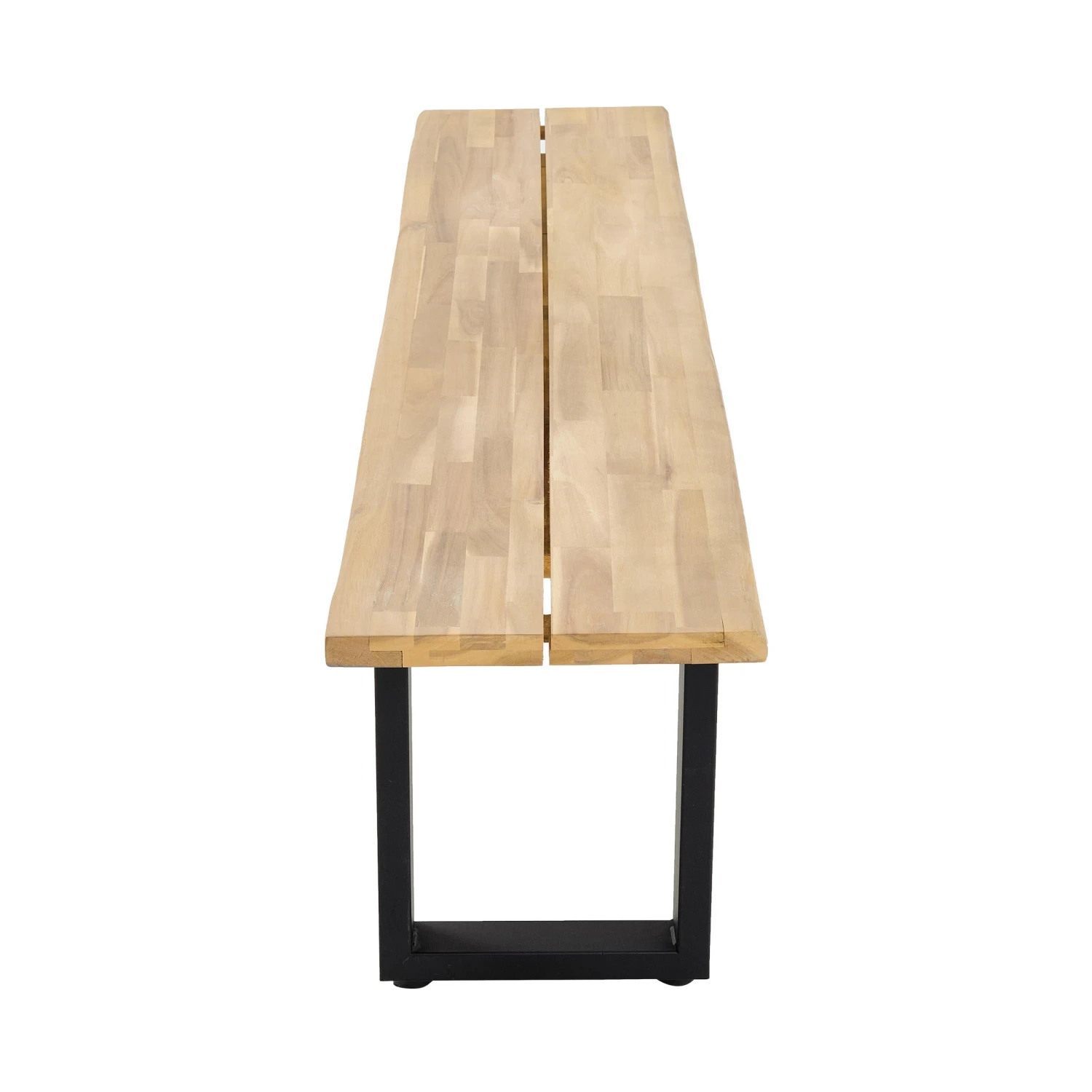 Clean, modern oder industrial sind genau Ihr Style? Dann passt die Edgewood Gartenbank perfekt auf Ihren großen Balkon oder Ihre Terrasse. Ihren besonderen Charakter verdankt das Sitzmöbel den Kufen aus schwarzem Eisen und der Platte aus Akazienholz. Einzelne kleine Holzleisten wurden hierfür zu großen langen Leisten verleimt, wodurch eine markante Musterung entsteht. Passender Gartentisch und 3-teilige Essgruppe mit Tisch und 2 Bänken erhältlich.