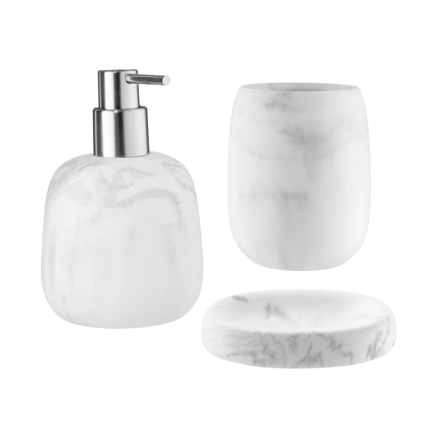 Badutensilien in Marmor-Look sind aus keinem Bad mehr wegzudenken, daher liegen Sie mit der edlen En Suite Seifenschale in Marmoroptik genau am Puls der Zeit. Mit eleganten Rundungen und einer täuschend echten Marmorierung ist die weiße Seifenschale ein Muss in jedem Badezimmer. Als Halterung für Ihre Lieblings-Handseife bekommt die Schale einen individuellen Charakter und wird so zum ganz persönlichen Badaccessoire. Auch passende Seifenspender und Zahnputzbecher erhältlich.