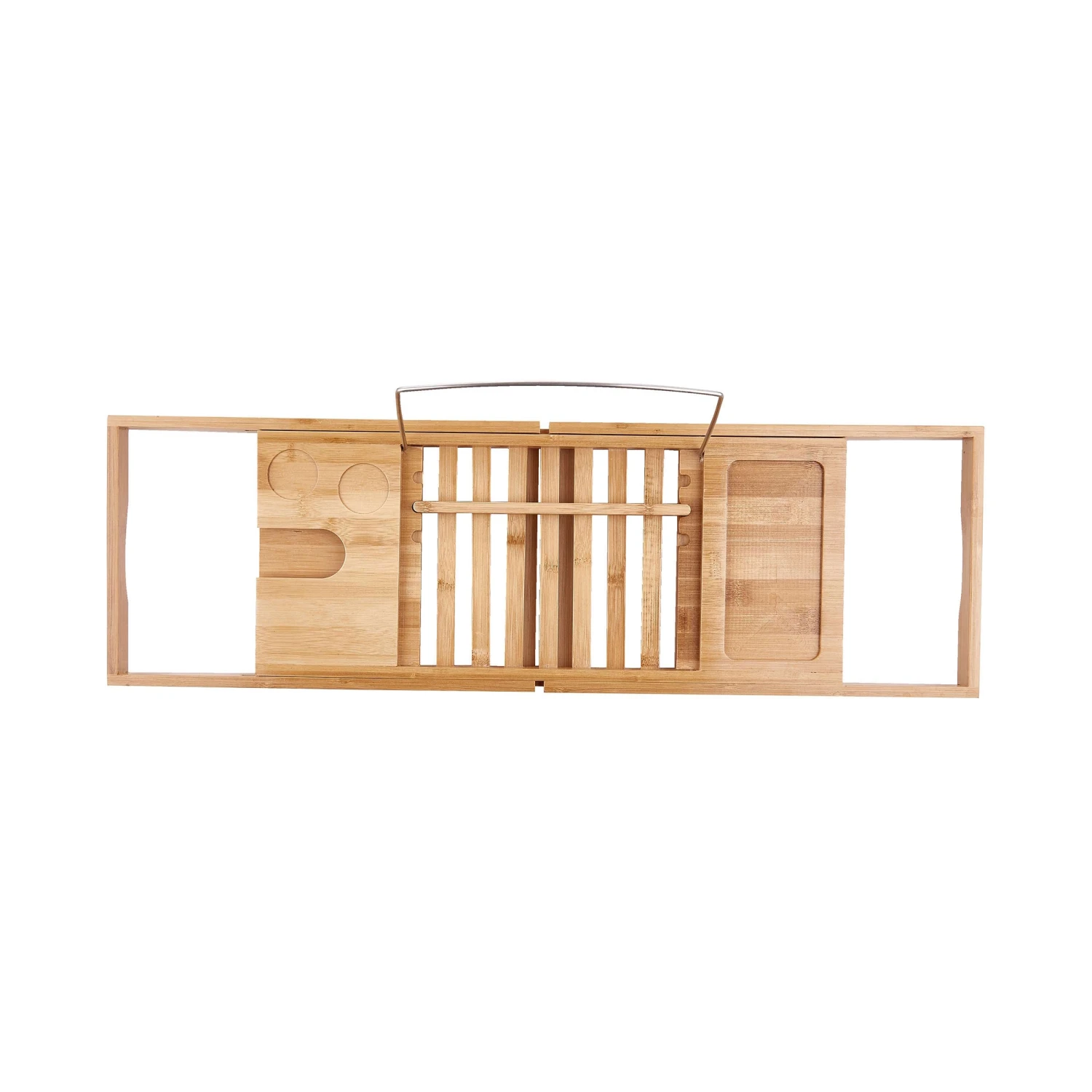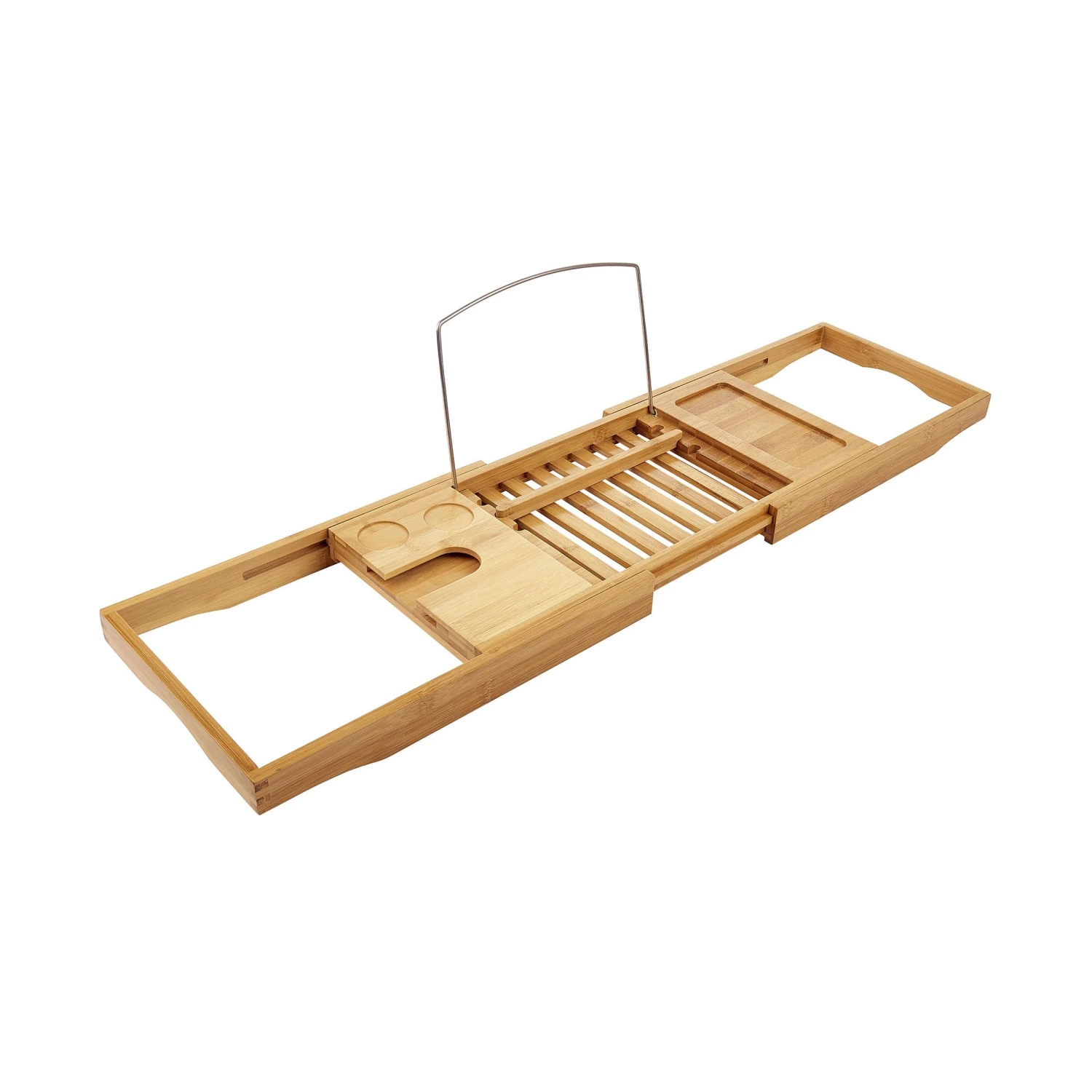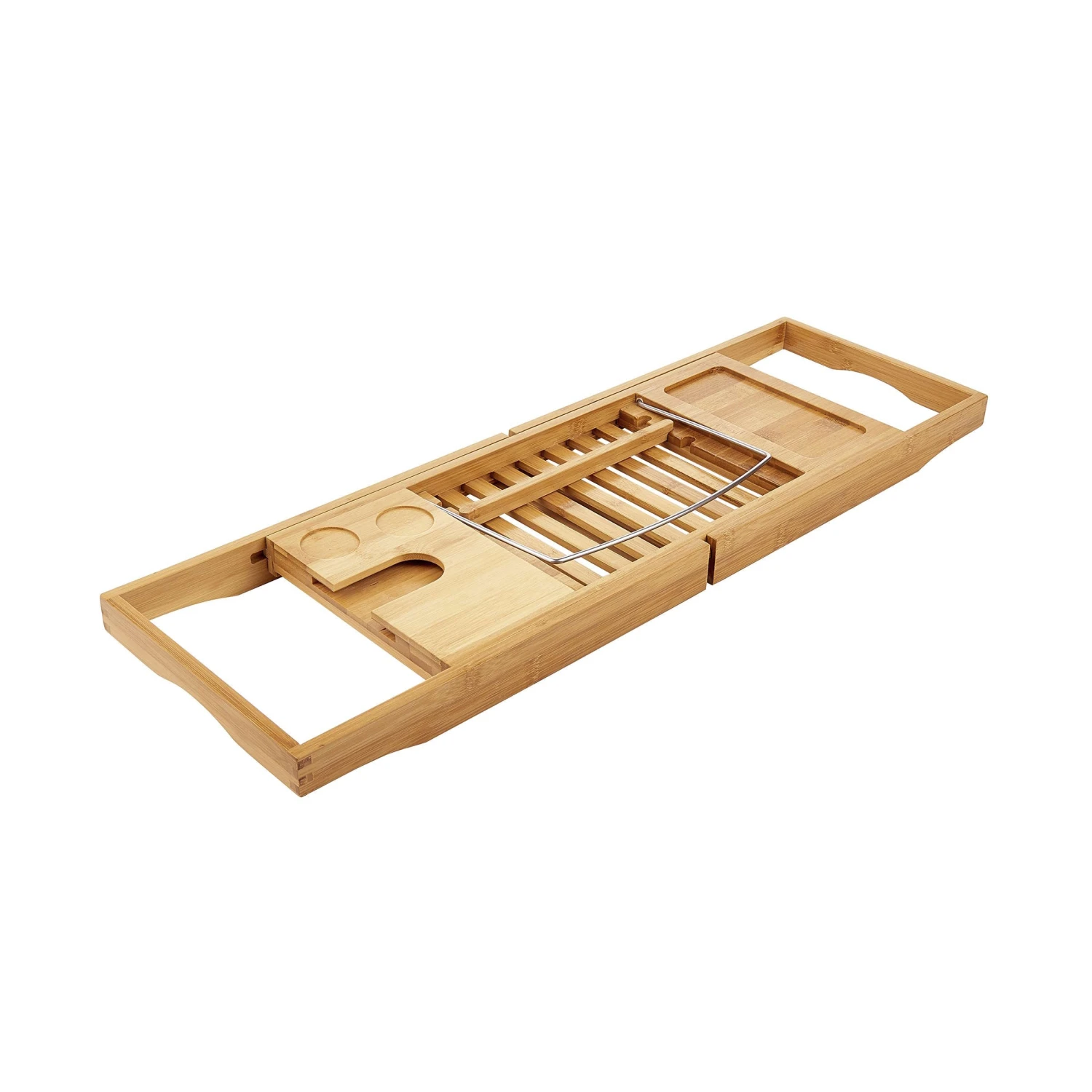 Erleben Sie Ihr ganz persönliches Wellnessprogramm für Zuhause. Mit der Feels Like Heaven Badewannenablage aus Bambusholz steht einem entspannten Bad nichts mehr im Wege. Die ausziehbare Holzablage bietet ausreichend Platz für Ihre Wohlfühlartikel, wie ein prickelndes Glas Champagner oder Ihr Lieblingsbuch. Aber auch ein Tablet findet Platz auf der exklusiven Badewannenablage mit Buchstütze, sodass Sie sogar Ihre Lieblingsserie in der Badewanne weiterschauen können. So lässt es sich leben.