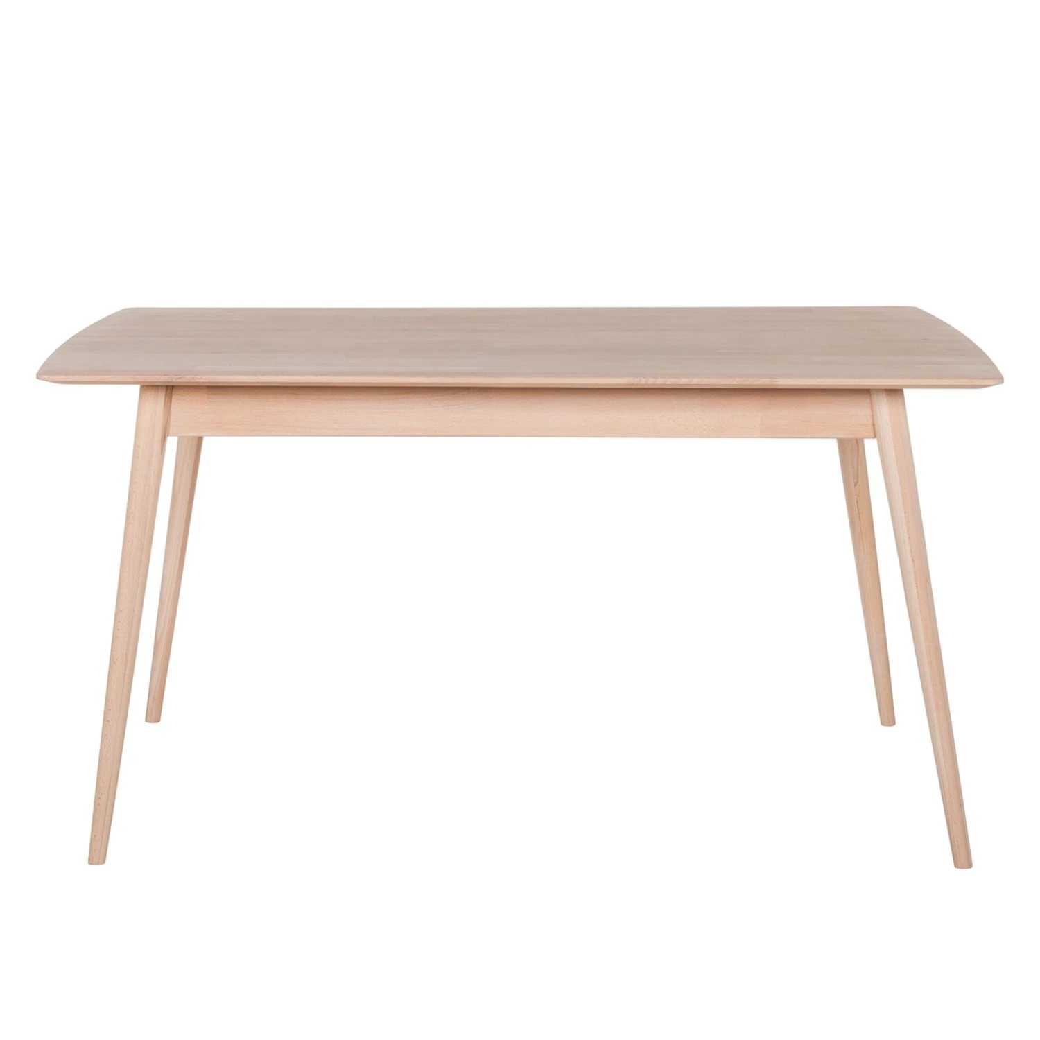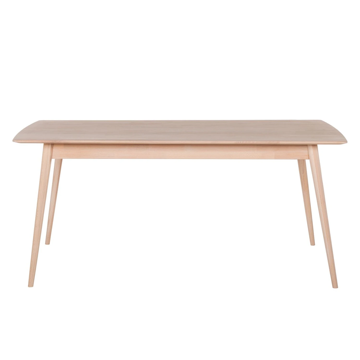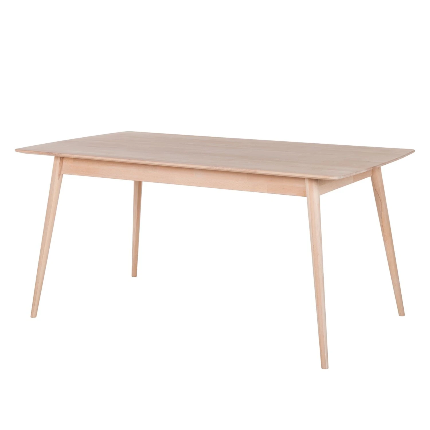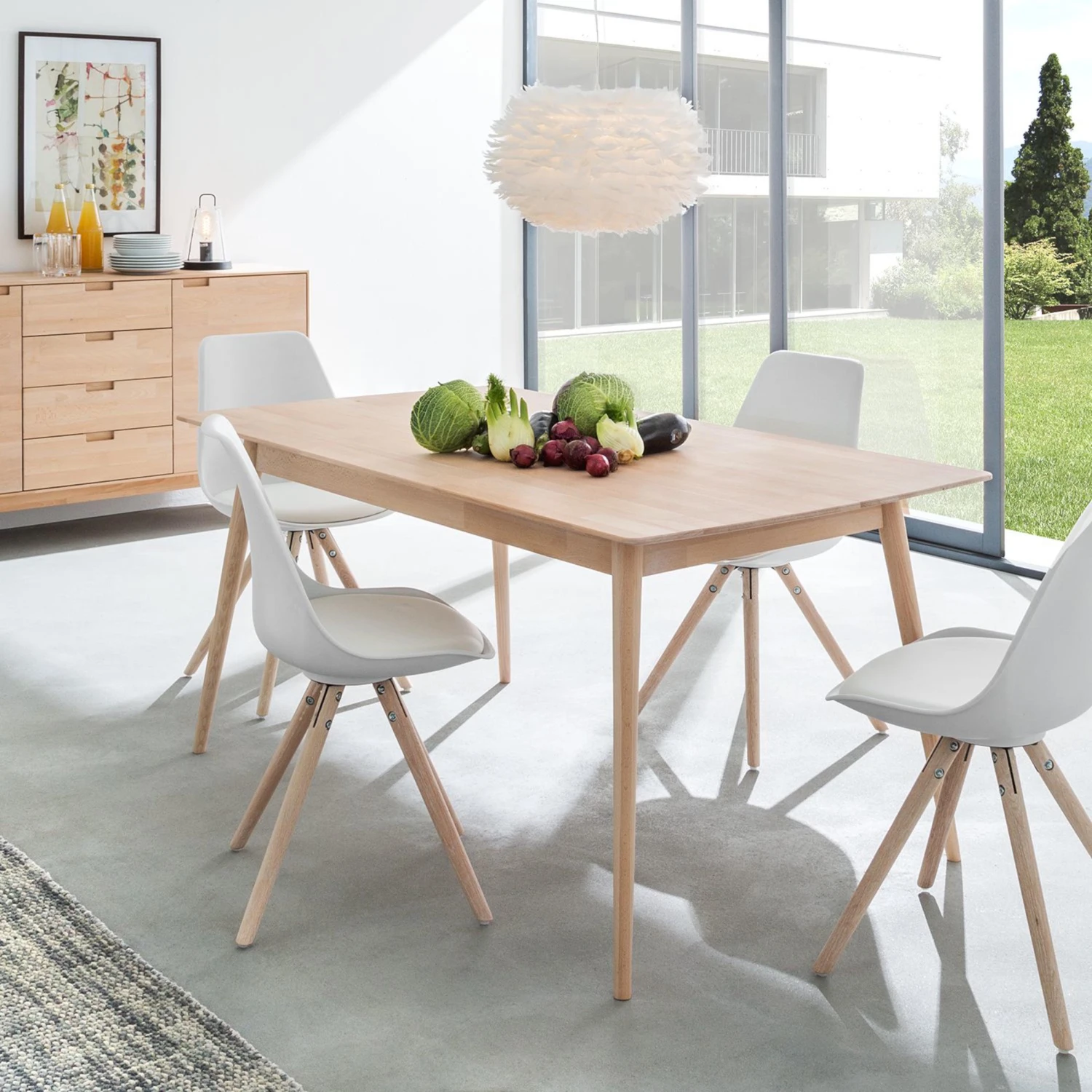 Der Esstisch Finsby I in hochwertiger Verarbeitung überzeugt mit viel hellem Holz und klarem geradlinigem Design. Das Möbelstück aus massiver Buche im skandinavischen Design ist auch in kleinen Ess- und Wohnbereichen ein schöner Treffpunkt für die Familie. Die nach außen schräg gestellten Beine werden nach unten schmaler und geben dem Tisch eine luftige und schlanke Silhouette sowie Standfestigkeit. Durch das helle Holz und die dünne Tischplatte sorgt der Esstisch Finsby I für ein freundliches und natürliches Ambiente.