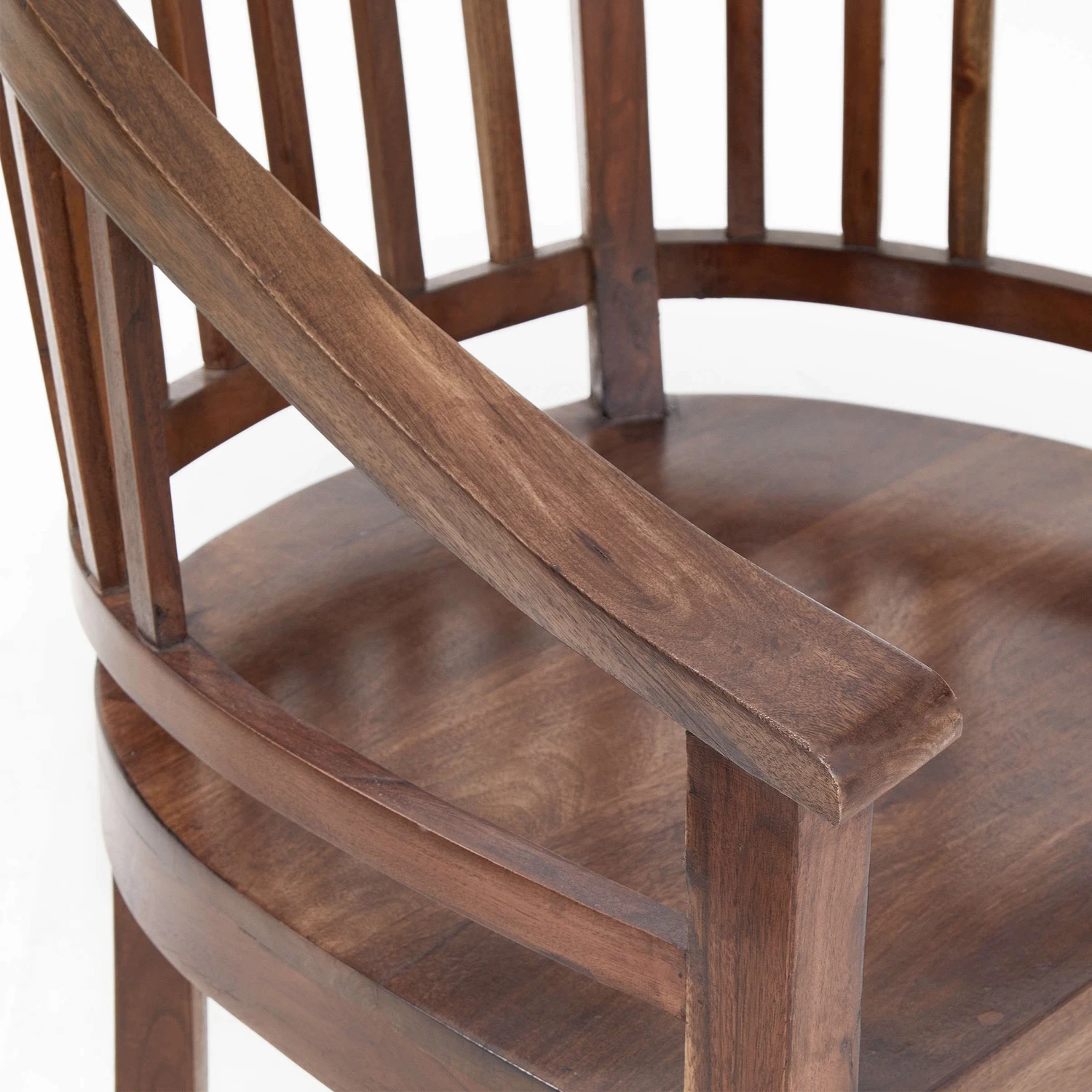 Der Hopkins-Lehnstuhl fühlt sich nicht nur beim Sitzen gut an, sondern auch beim Anfassen: Die schön geschwungene Rückenlehne und der Handlauf sind ganz glatt, richtige Handschmeichler eben. Da streicht man gerne im Vorbeigehen mal drüber. Weitere Hopkins-Möbel im altenglischen Stil erhältlich – in mittlerem bis dunklem Holz.