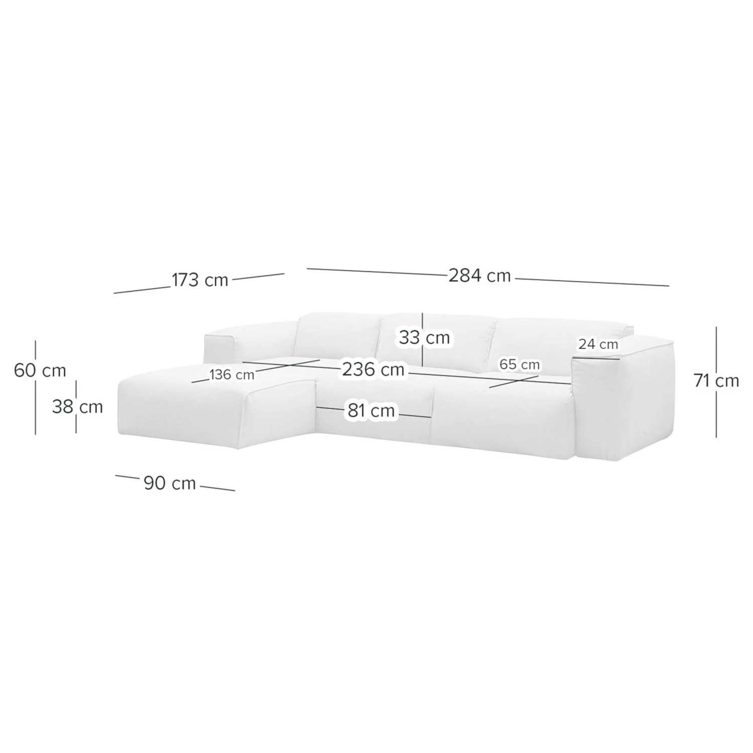 HUDSON Ecksofa 3-Sitzer Mit Longchair Davorstehend Links