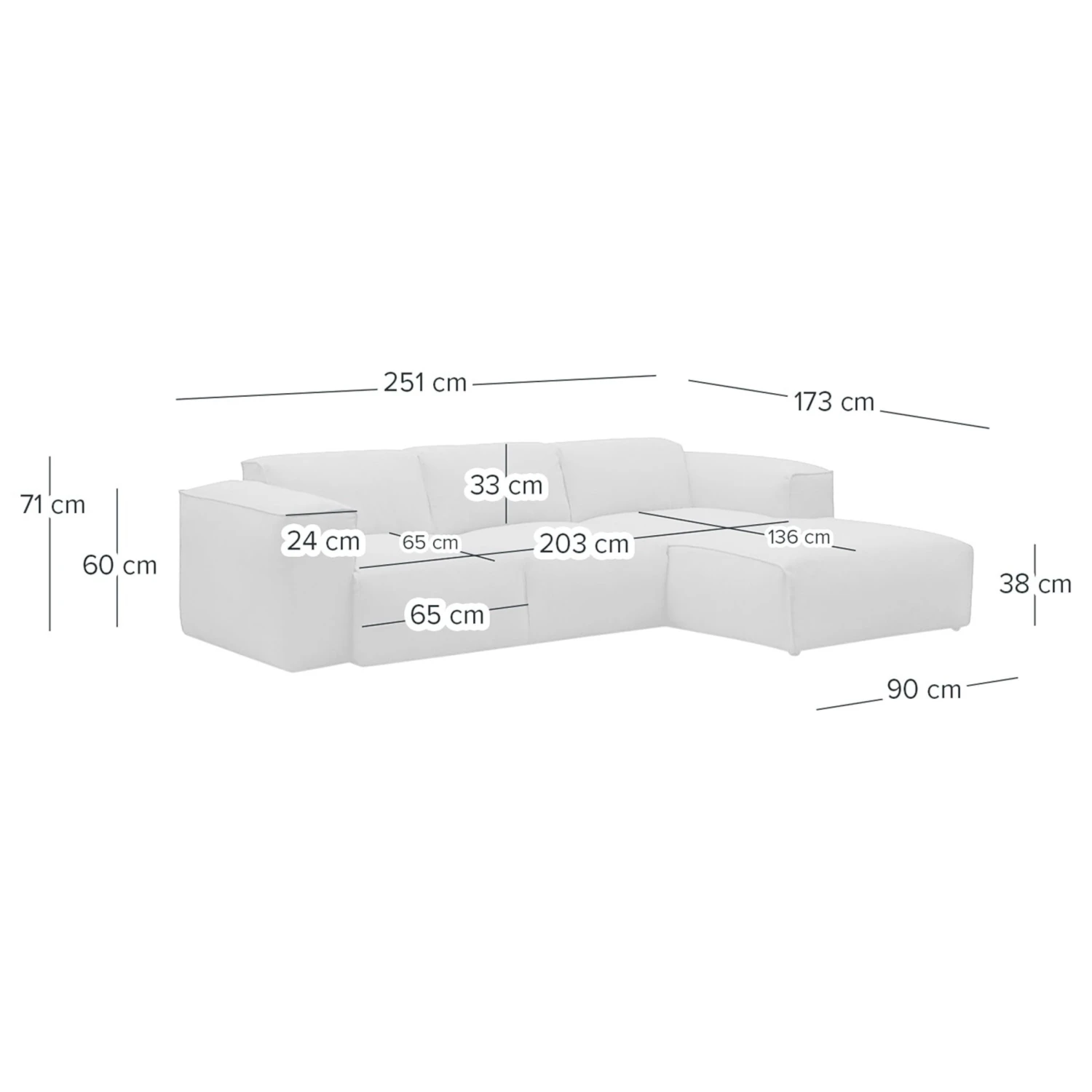 HUDSON Ecksofa 3-Sitzer Mit Longchair Rechts Davorstehend Echtleder