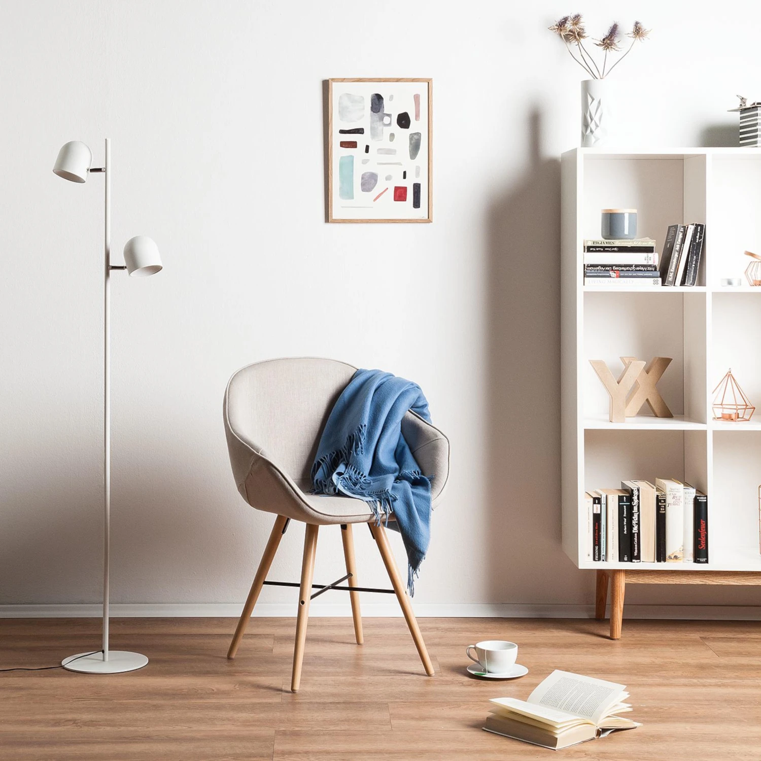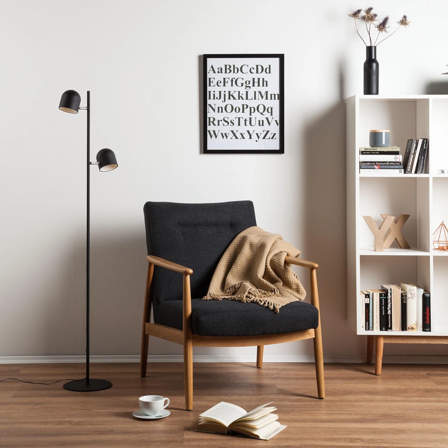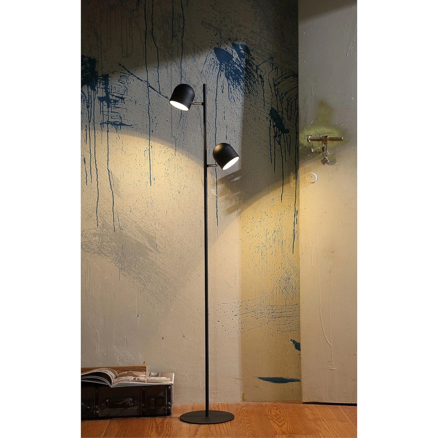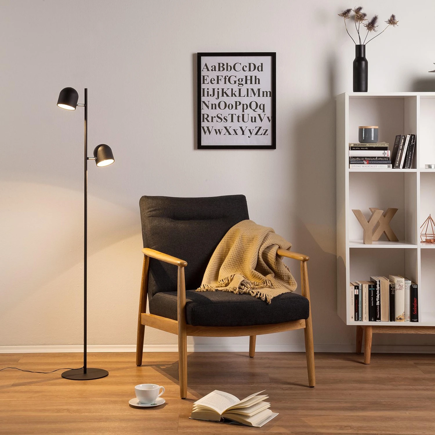 Zu einer Einrichtung im modernen Stil passt die LED-Stehleuchte Jon aufgrund ihres puristischen Designs hervorragend. Die aus zwei an einem Stab befestigten Lampen bestehende Leuchte wurde aus pulverbeschichtetem Eisen gefertigt. Praktisch ist, dass sich die einzelnen tassenförmigen Spots flexibel in die gewünschte Position verstellen lassen, sodass man punktgenaues Licht erhält. Mithilfe eines Touch-Schalters auf der Rückseite jedes Lampenschirms wird die Lichtstärke reguliert. Dank ihrer kompakten Maße kann die LED-Stehleuchte Jon überall aufgestellt werden. Sie eignet sich ideal als Stehlampe neben einem Sofa oder Sessel, lässt sich aber genauso gut in Zimmerecken oder an anderen Orten in einem stilvollen Heim platzieren.