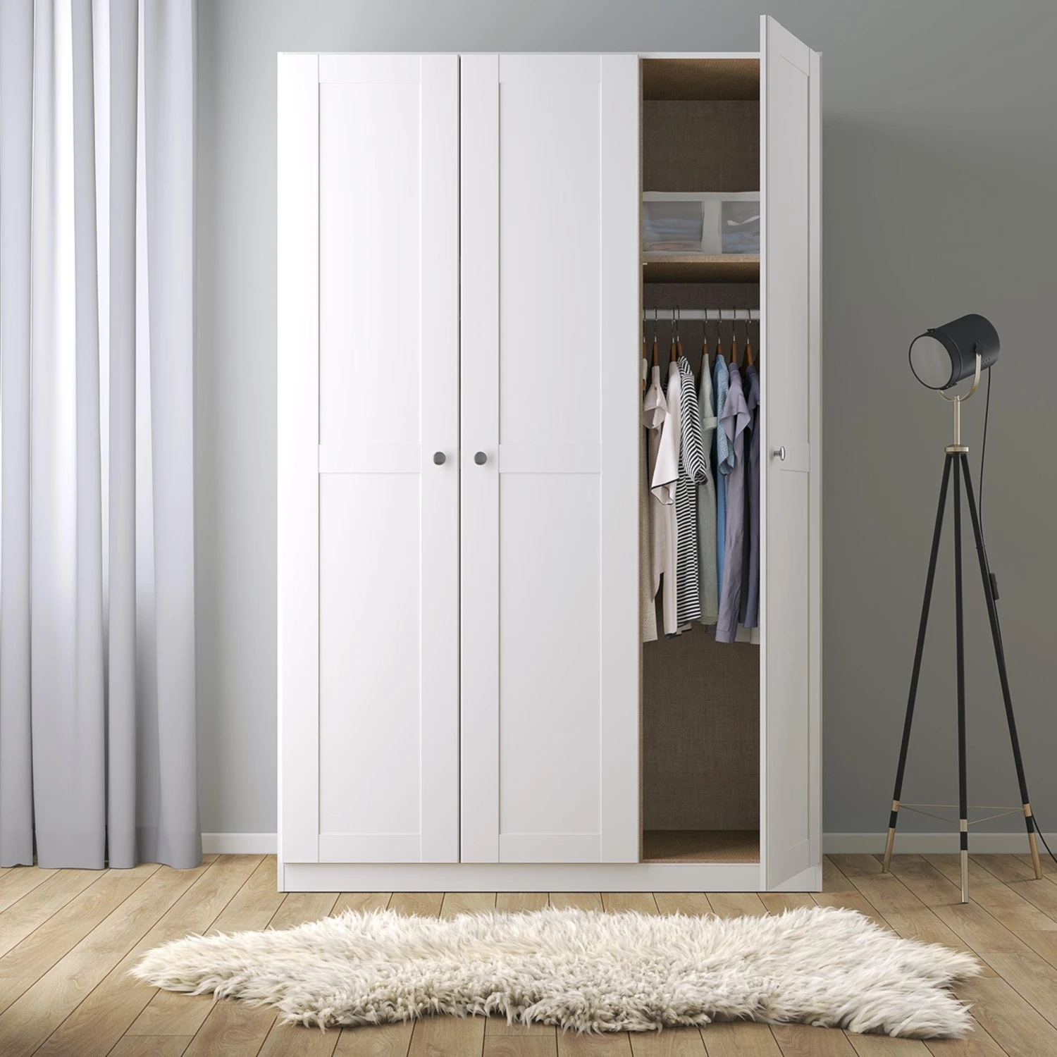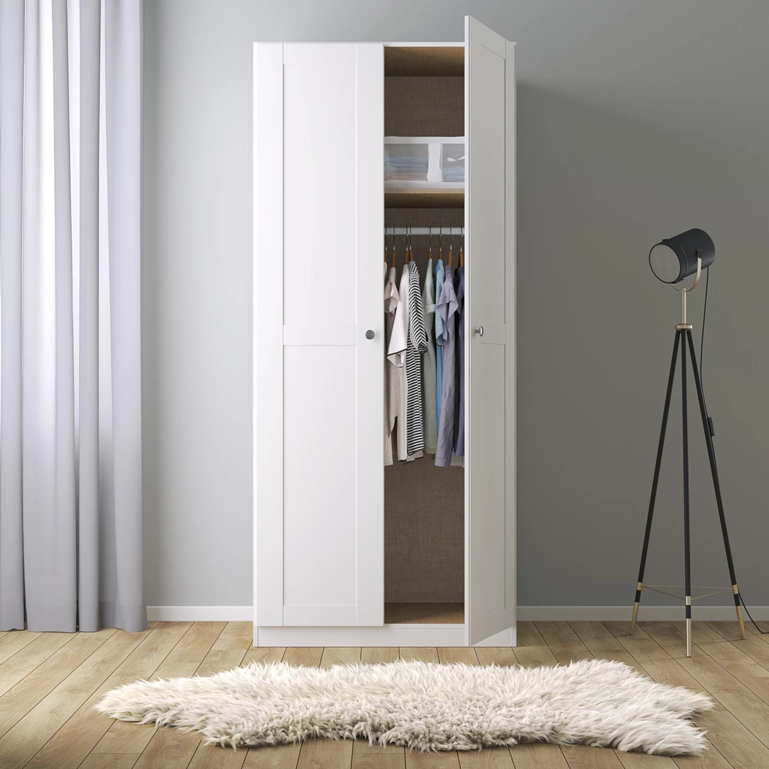 Wer einen Kleiderschrank sucht, der zum Landhaus-Stil passt, wird hier fündig: Das Modell von KiYDOO passt mit seinem klaren Weiß, der traditionellen Bauweise der Drehtüren und den rustikalen Beschlägen bestens in romantische Schlafzimmer mit Landhausflair. Und nicht nur von außen, der Innenraum ist in natürlicher Leinenoptik gehalten. Verschiedene zusätzlich erhältliche Zubehörteile zur praktischen Organisation des Schrankinneren lassen keine Wünsche übrig.