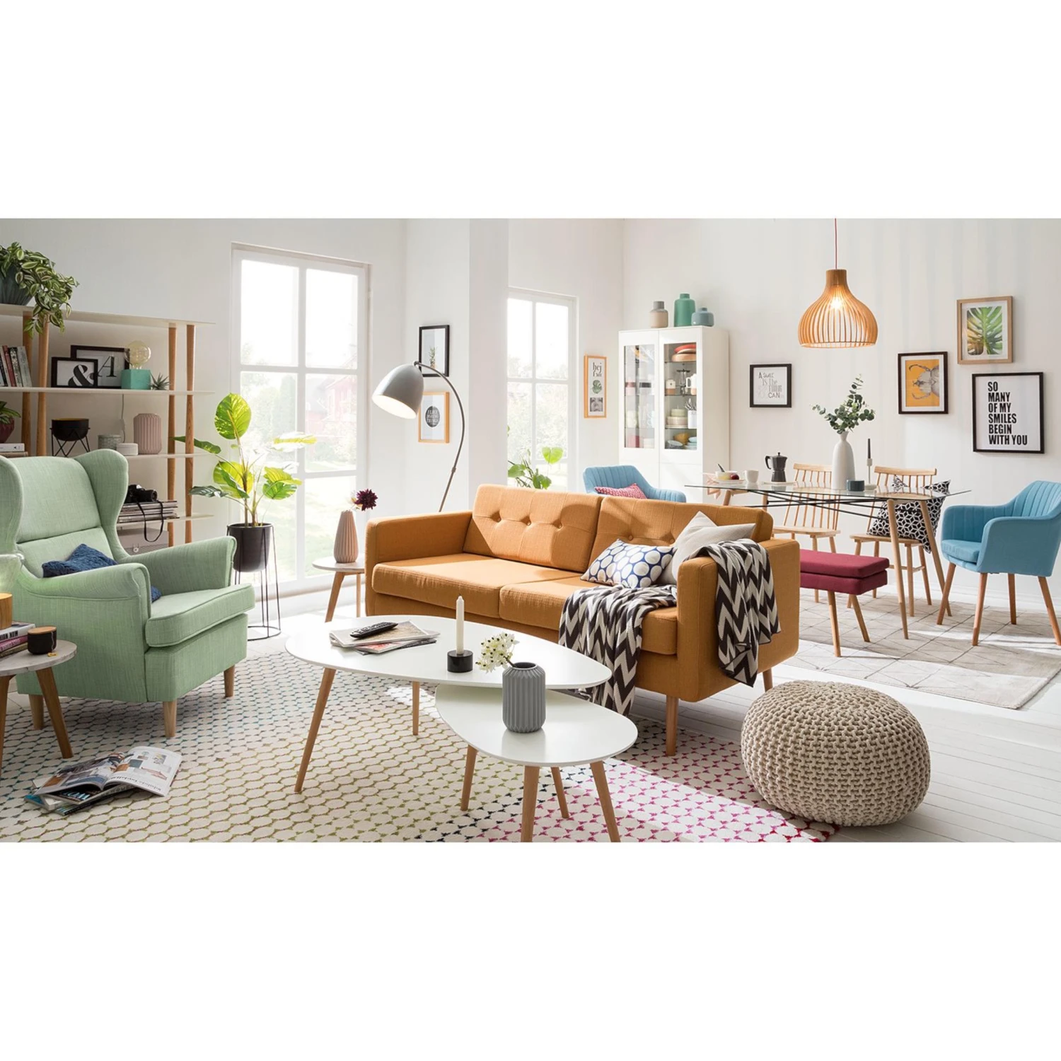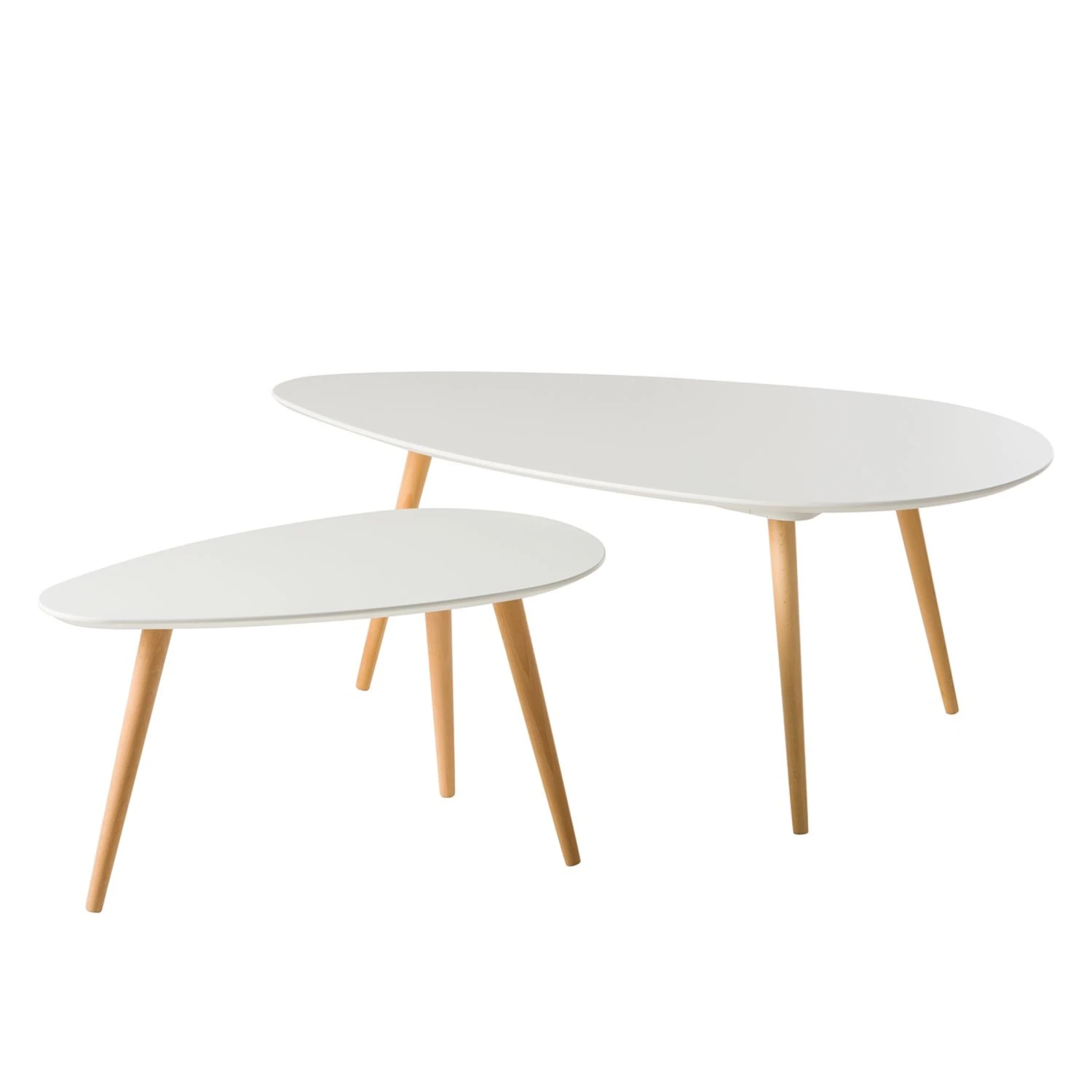 Die Tischplatte des Couchtischs Lilja ist aus einer mitteldichten Holzfaserplatte gefertigt worden, welche sich durch eine hochwertige Verarbeitung auszeichnet. Besondere Stabilität erhält der Couchtisch Lilja durch seine Beine, die aus massivem naturbelassenem Buchenholz bestehen. Das 2-teilige Set, bestehend aus einem kleinen und einem großen Tisch, glänzt durch einen skandinavischen Stil und der schlichten Formgebung. Aufgrund dessen kann es gut mit anderen Möbelstücken kombiniert werden. Des Weiteren ist die Oberfläche des Couchtisch Lilja durch eine pflegeleichte matte Oberfläche geprägt.
