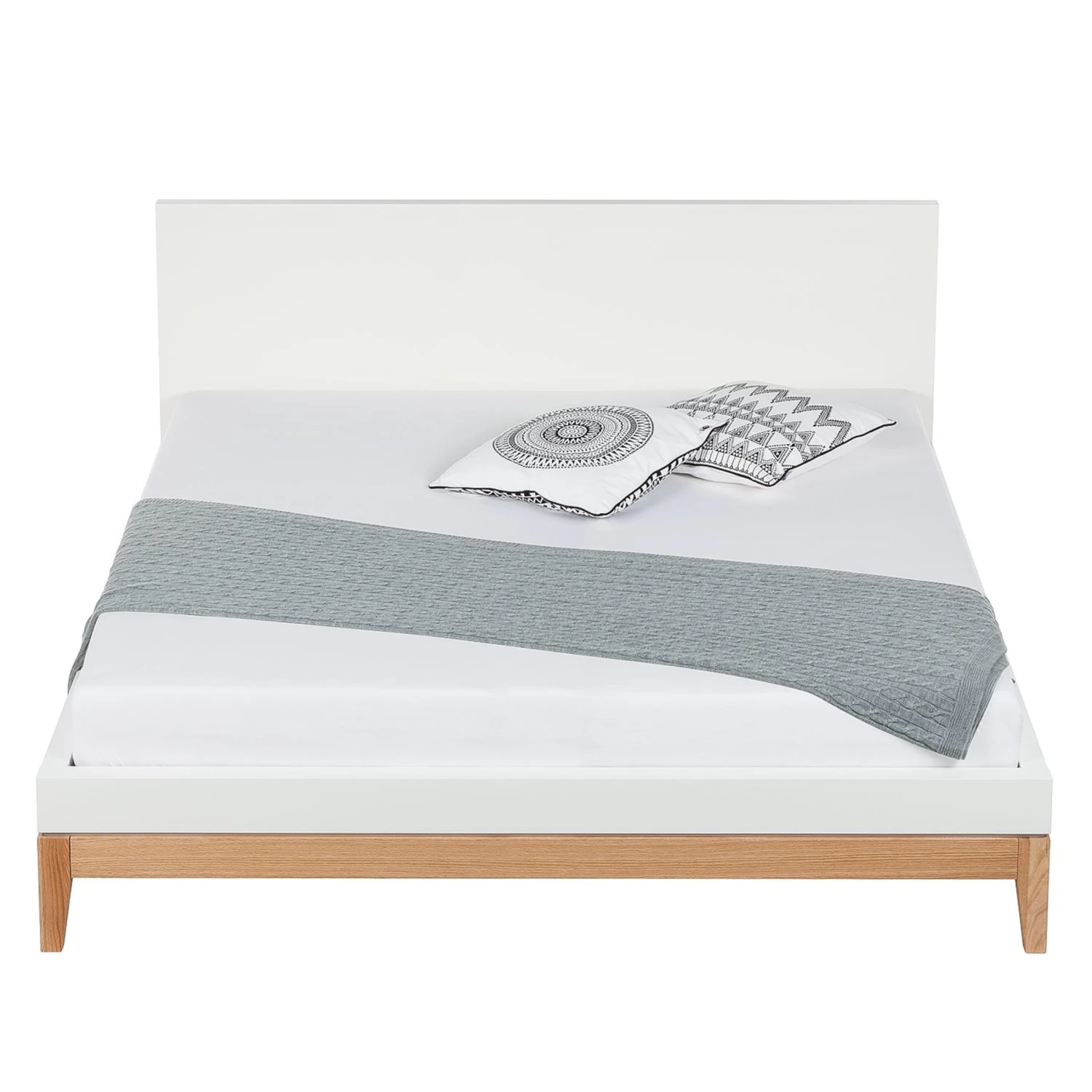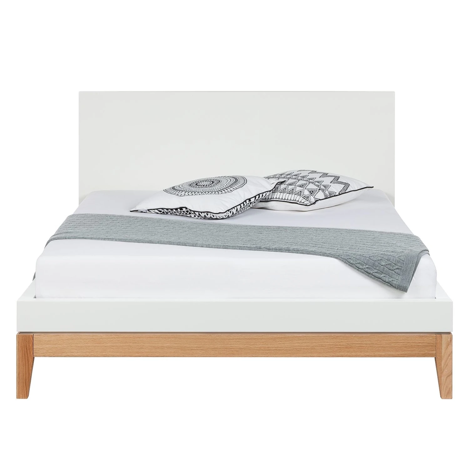 Aufgrund einer sehr schlichten Gestaltung bietet das zweifarbige Bett Lindholm II Freiraum für eine Kombination mit bunten Bettwäschen oder anderen Wohnaccessoires. Die stabilen Bettfüße sowie die einrahmenden Leisten in Eiche Dekor harmonieren wunderbar mit dem restlichen Design. Durch die Holzoptik strahlt die gemütliche Schlafstätte aus TÜV-geprüften Spanplatten der Güteklasse E1 eine wohnliche Atmosphäre aus. So bleibt man morgens gerne mal länger im Bett Lindholm II liegen und genießt zu zweit oder mit den Kindern einen entspannten Start in den Tag.