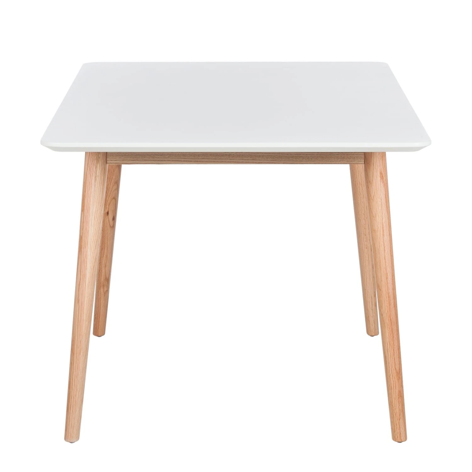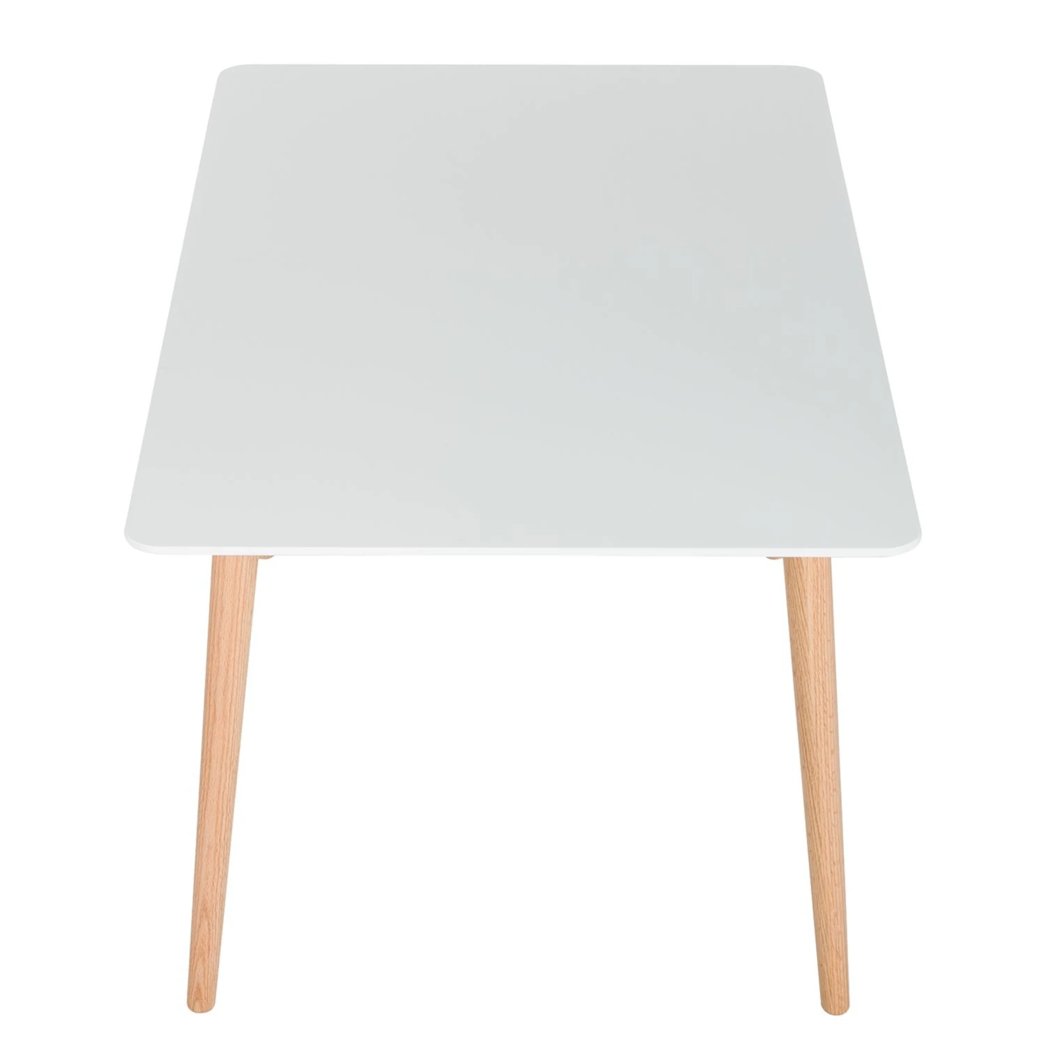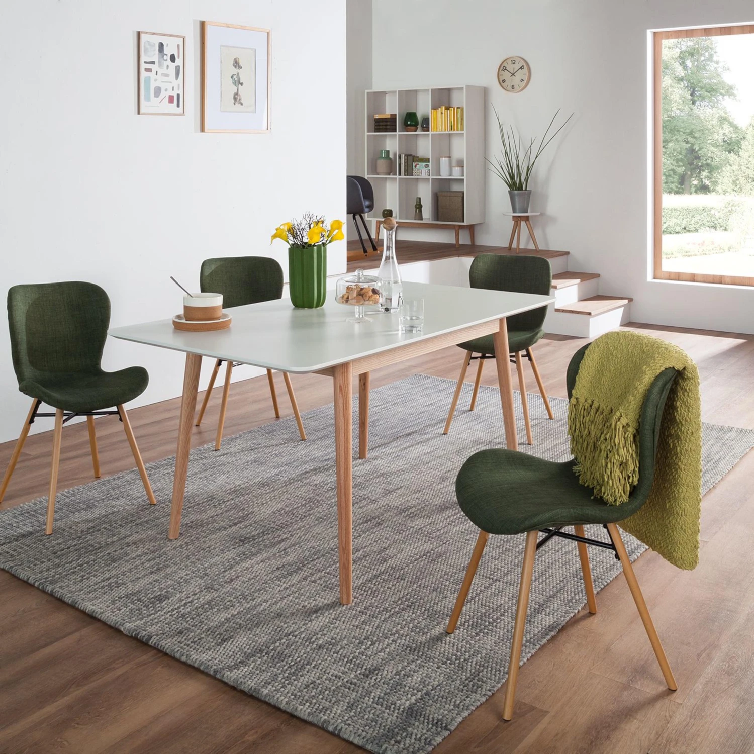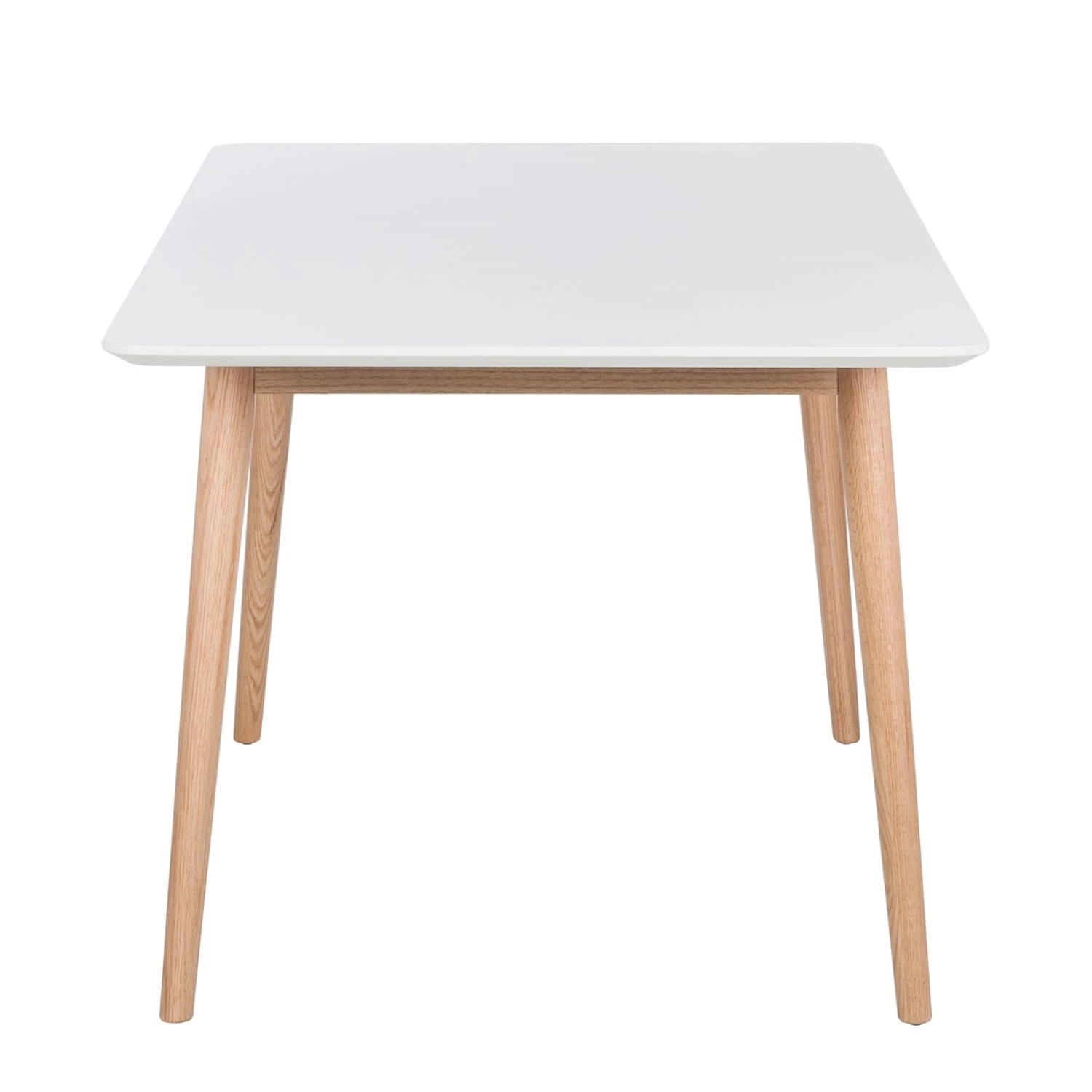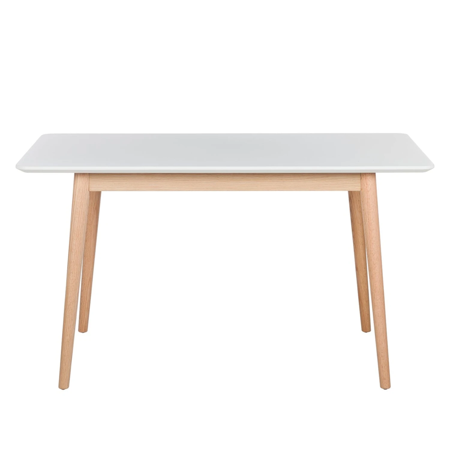 Der Esstisch Lindholm III ist ein Muss für alle Freunde des skandinavischen Wohnstils. Er besticht durch einfache und klare Linien. Das filigrane Gestell aus massiver Eiche zeigt eine feine Maserung. Das Gestell trägt eine weiße Tischplatte aus MDF. Dieses ist besonders hochwertig und mit der Güteklasse E1 ausgezeichnet. Diese zeichnet sich durch abgerundete Ecken und Kanten aus, die zum gemütlichen Sitzen einladen. Der Esstisch Lindholm III verbindet auf diese Weise eine stabile Konstruktion mit pflegeleichten Oberflächen, warmes Holz mit einer kühlen und formschönen Oberfläche.