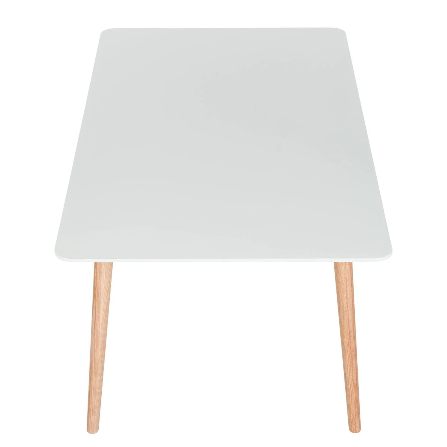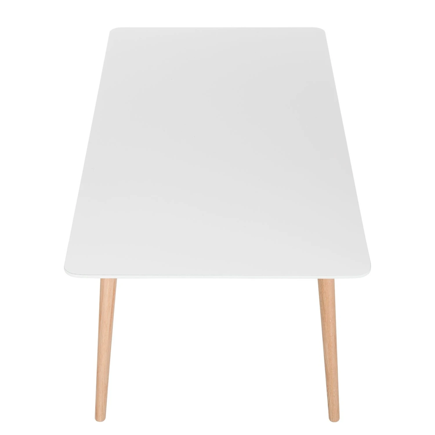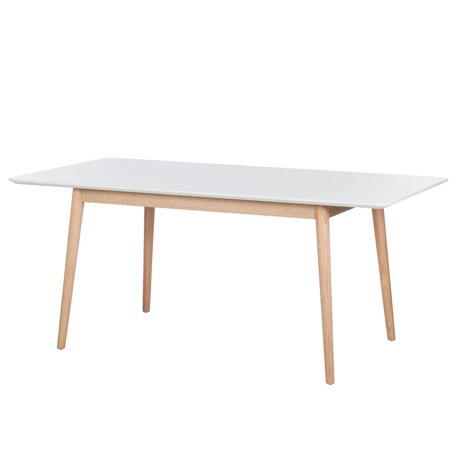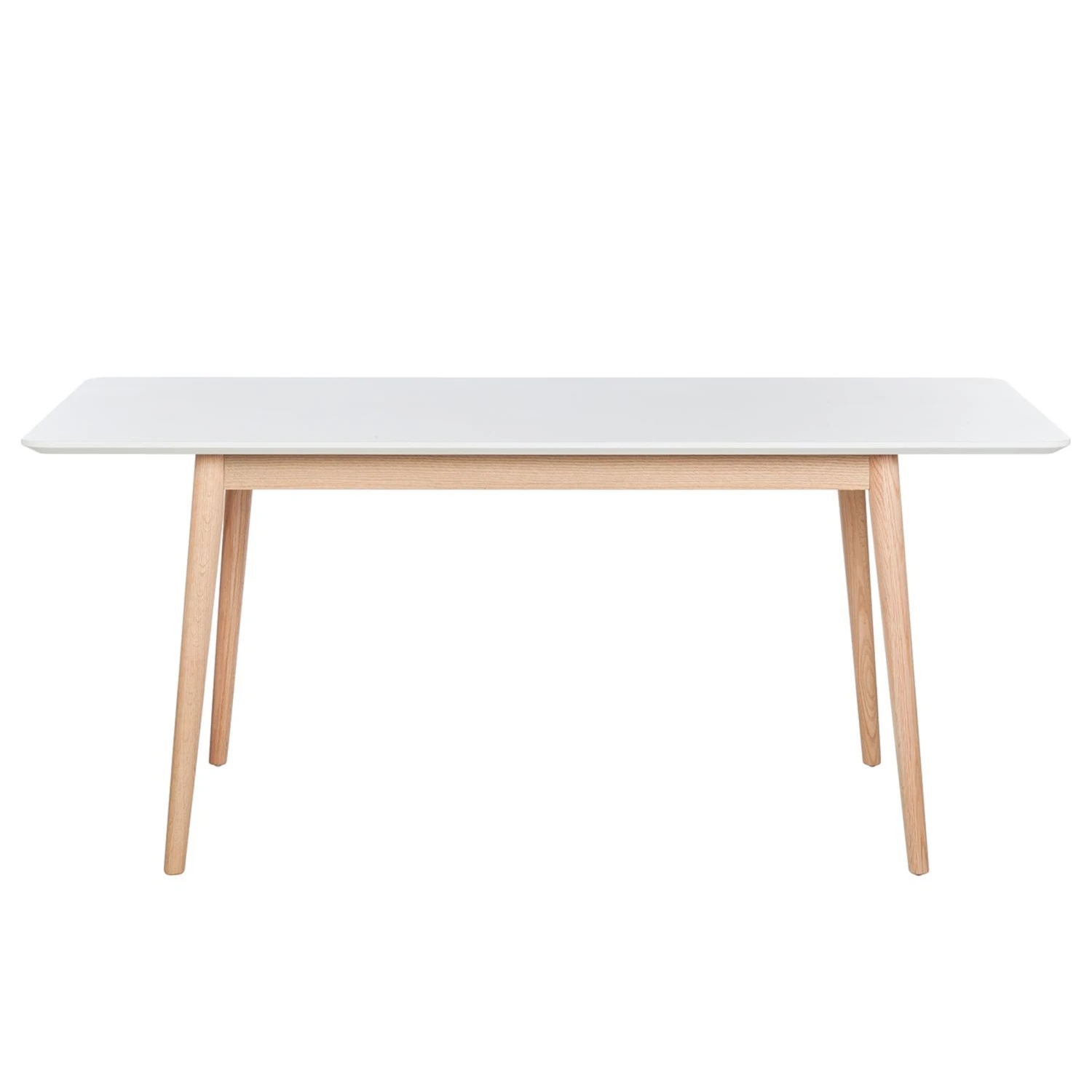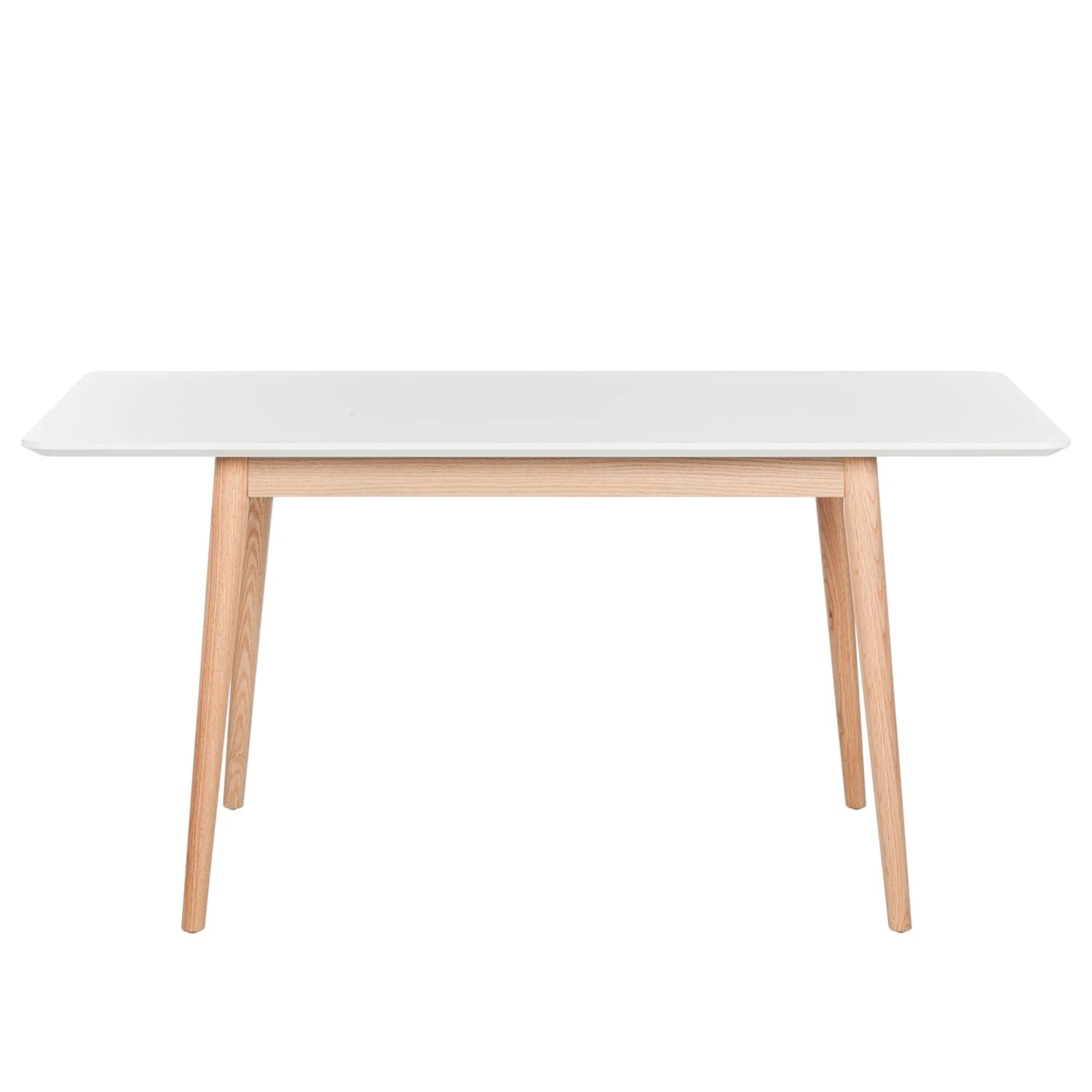 Der Esstisch Lindholm III ist ein Muss für alle Freunde des skandinavischen Wohnstils. Er besticht durch einfache und klare Linien. Das filigrane Gestell aus massiver Eiche zeigt eine feine Maserung. Das Gestell trägt eine weiße Tischplatte aus MDF. Dieses ist besonders hochwertig und mit der Güteklasse E1 ausgezeichnet. Diese zeichnet sich durch abgerundete Ecken und Kanten aus, die zum gemütlichen Sitzen einladen. Der Esstisch Lindholm III verbindet auf diese Weise eine stabile Konstruktion mit pflegeleichten Oberflächen, warmes Holz mit einer kühlen und formschönen Oberfläche.