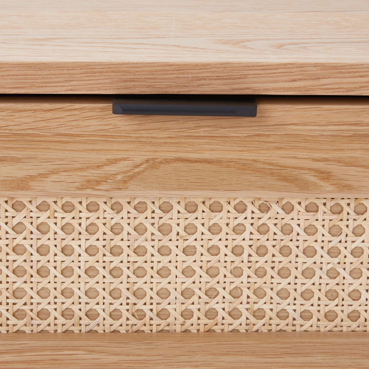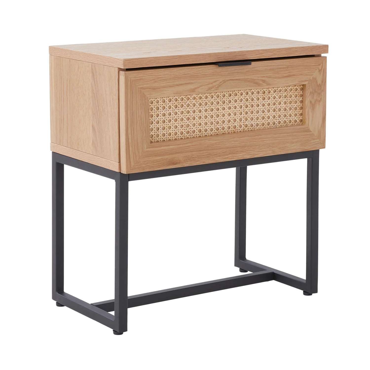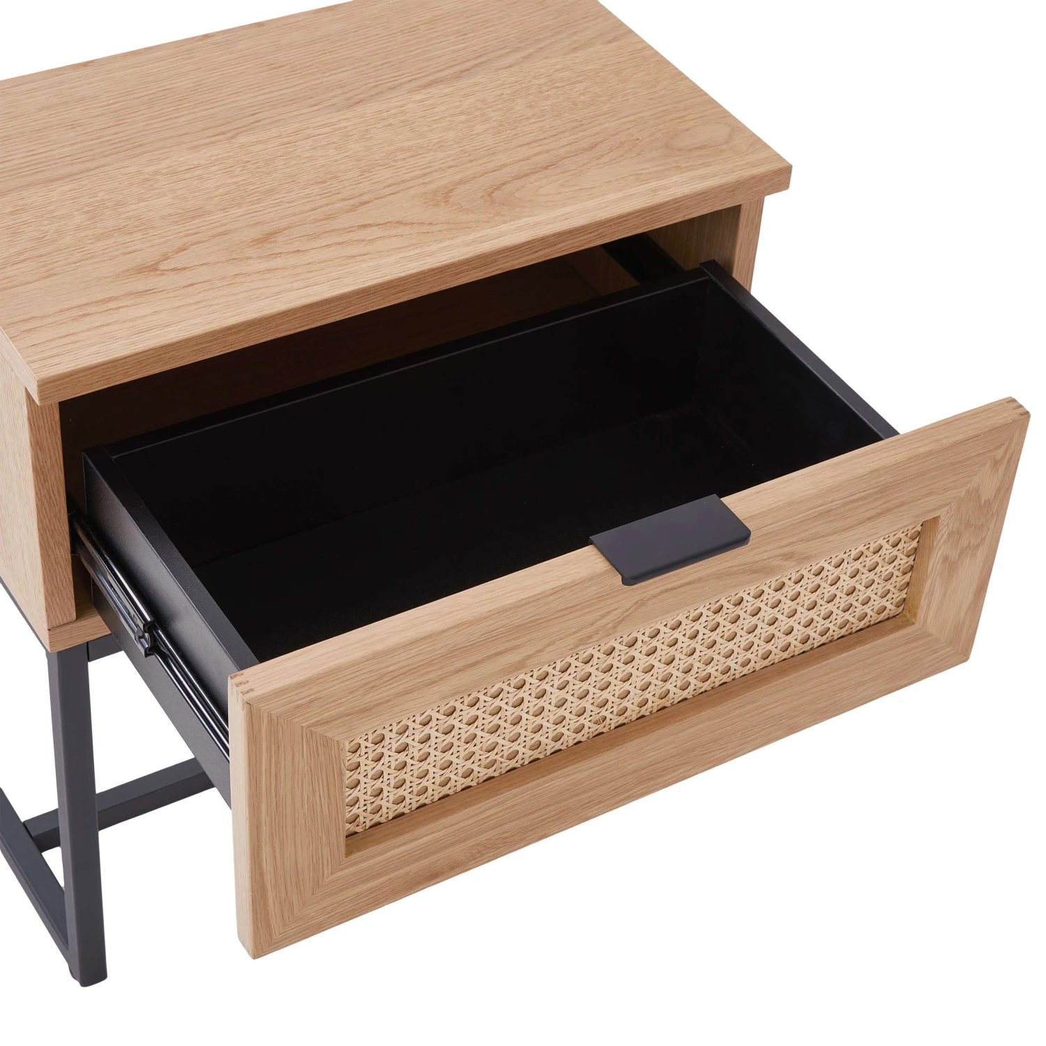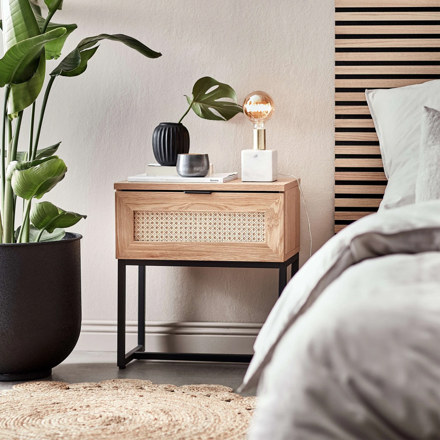 Ein Möbelstück der neuen Generation: Das Little Vienna Beistellschränkchen kombiniert Metall, Eichenholzfurnier und Rattan in Wiener Geflecht mit geradliniger, klarer Formensprache. Daraus entsteht ein ungemein modernes Design, das überall in Ihrem Zuhause für Wow- und Aha-Effekte sorgt. Sie platzieren den Bestellschrank z.B. im Wohnzimmer neben Sofa oder Sessel, nutzen ihn im Flur als Aufbewahrung und Ablage oder verwenden ihn im Schlafzimmer als Nachtschränkchen. Überall dort überzeugt das Vienna Beistellschränkchen mit einer Optik, die eher leicht als kompakt wirkt – und das trotz des massiven Gewichts dieses Möbelstücks.