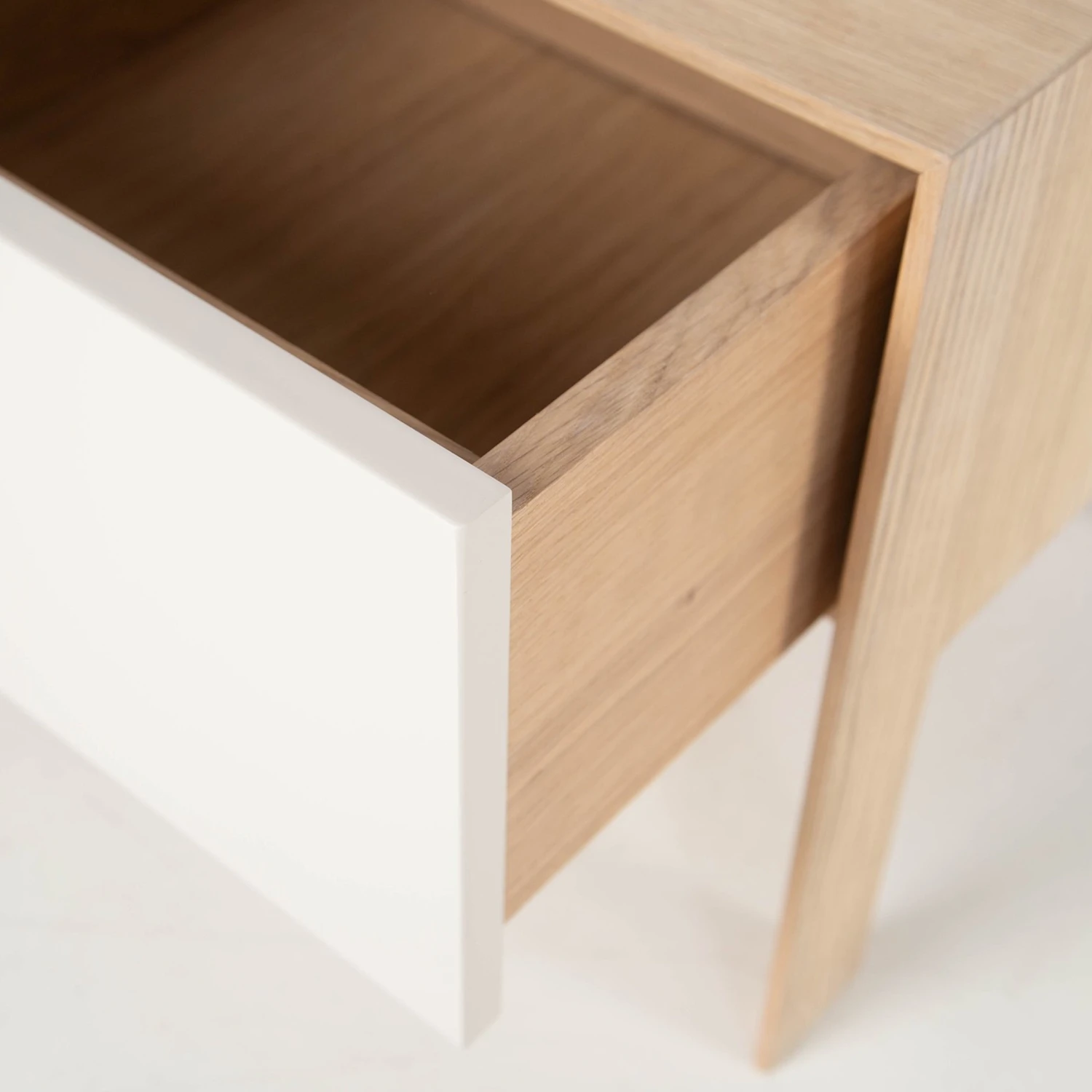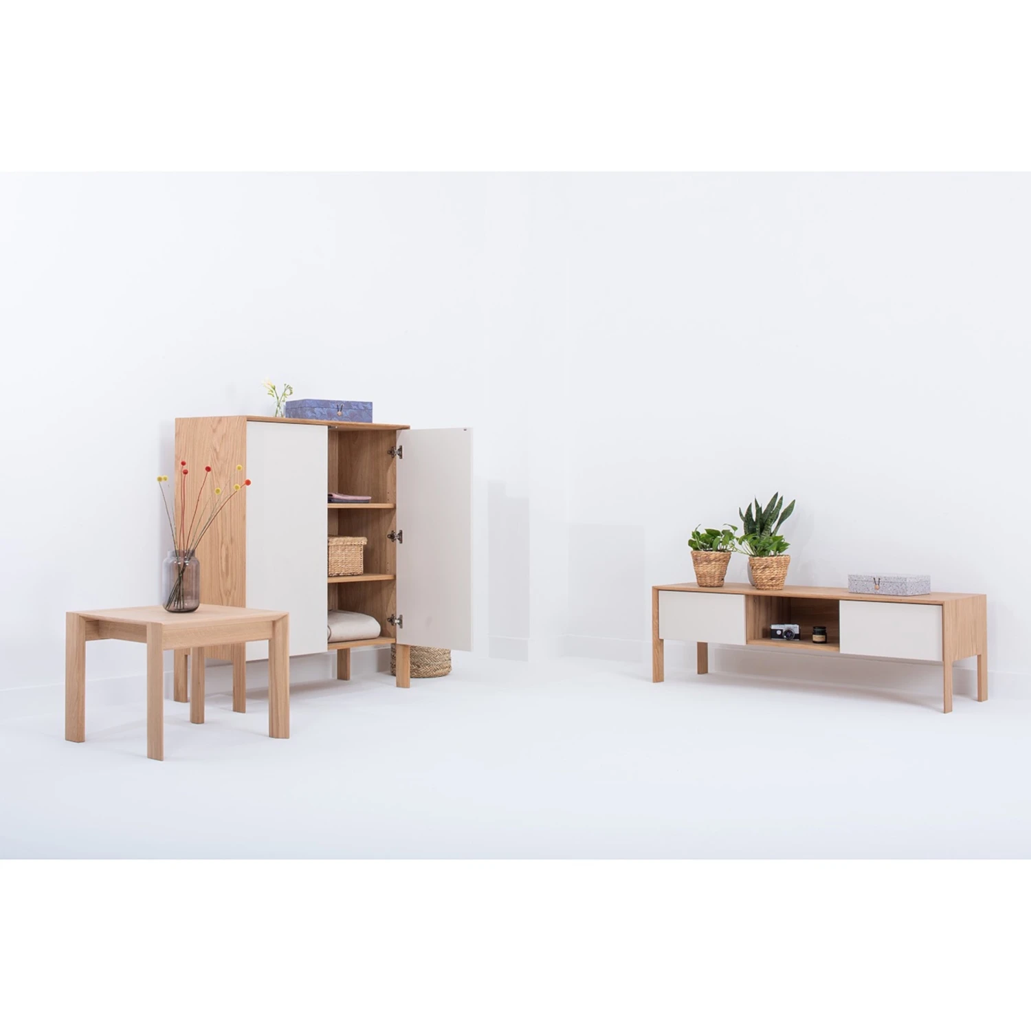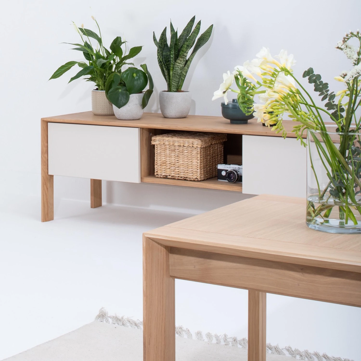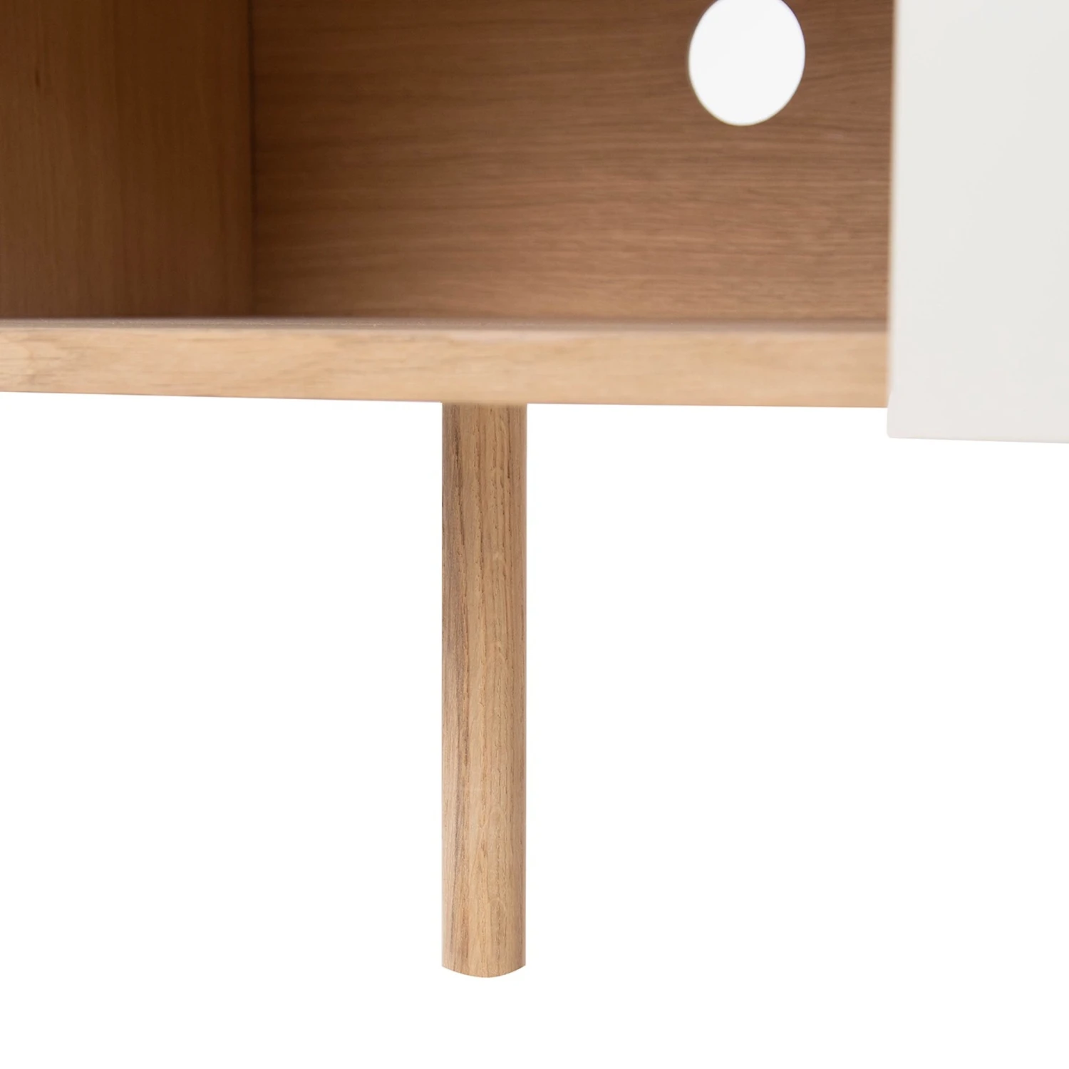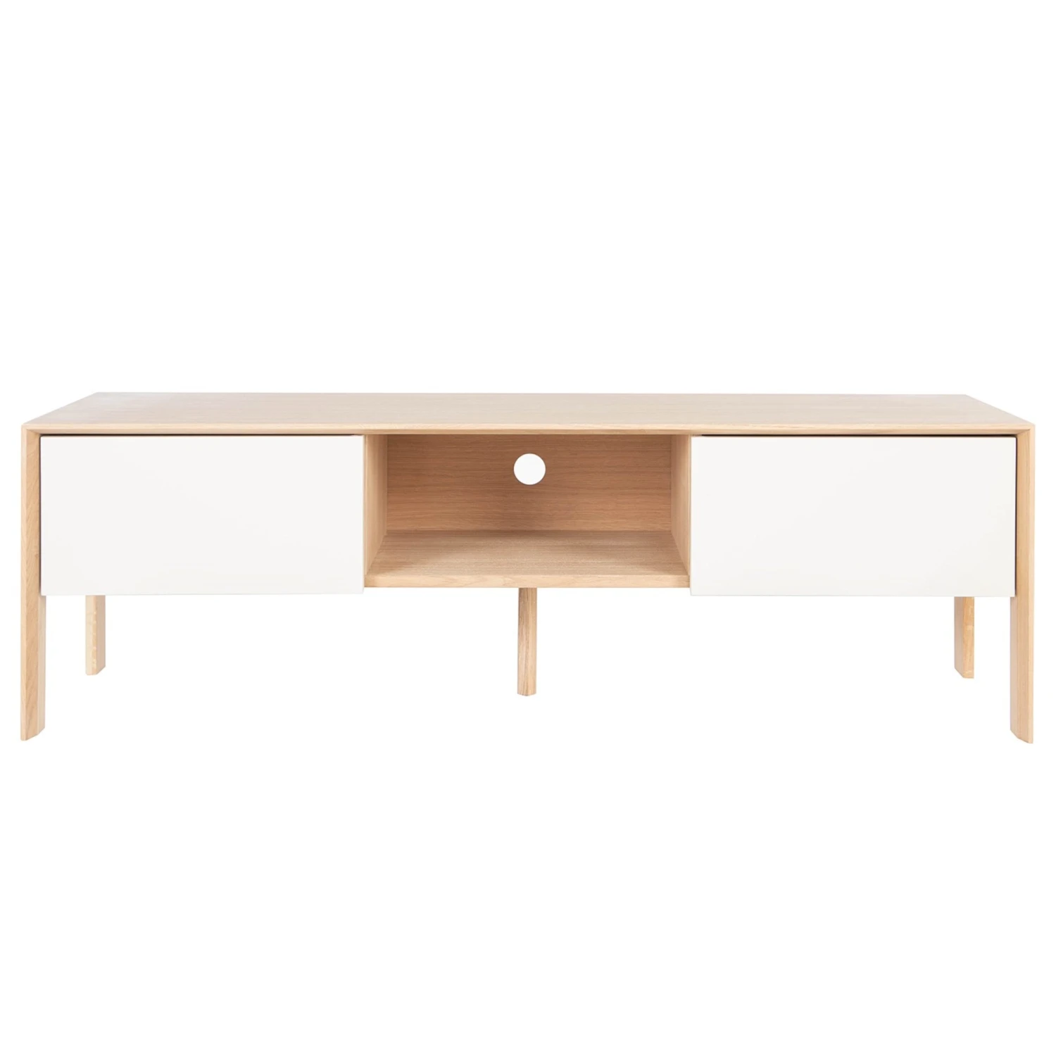 Das TV-Lowboard Maayka I aus dem Hause Möbel ist ein wunderschönes TV-Möbel, welches in den Farben Weiß und Braun erhältlich ist. Das Frontmaterial des Lowboards besteht aus MDF (Mitteldichte Holzfaserplatte), welches emailliert ist. Der Korpus des Lowboards besteht aus MDF (Mitteldichte Holzfaserplatte), welches furniert und geölt ist. Das Gestell des Lowboards besteht aus massivem Holz der Eiche, welches geölt ist.
