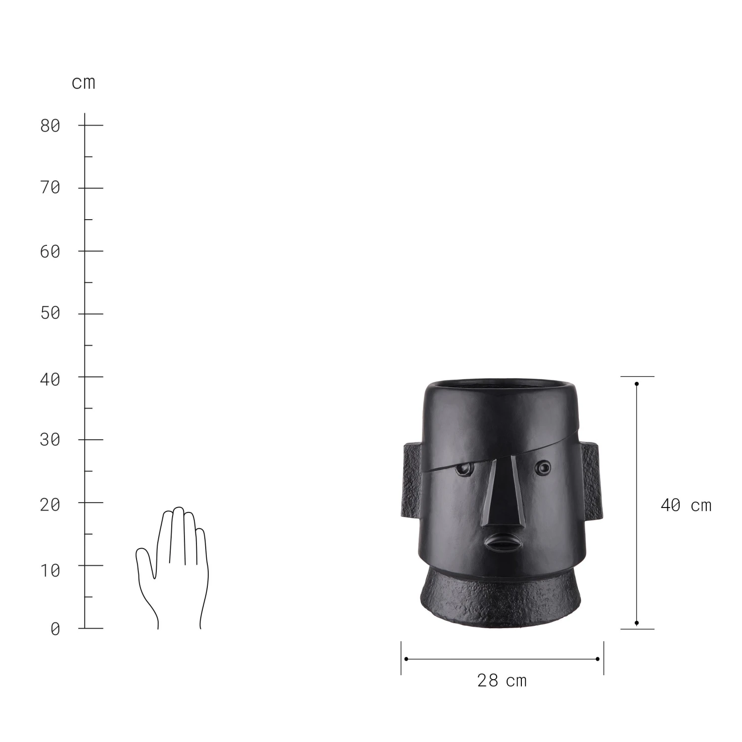 Mit südpazifischen Grüßen: Das Design des schwarzen Moai Blumentopf Osterinsel ist von den berühmten polynesischen Steinstatuen inspiriert. Da macht ihn zu einem kleinen Kunststück und außergewöhnlichen Blickfang. Aus wetterbeständigem Magnesia gefertigt, ist der Blumentopf auch für Outdoor geeignet – dann sollte allerdings ein Loch in den Topf gebohrt werden, damit Regen- und Gießwasser abfließen kann.