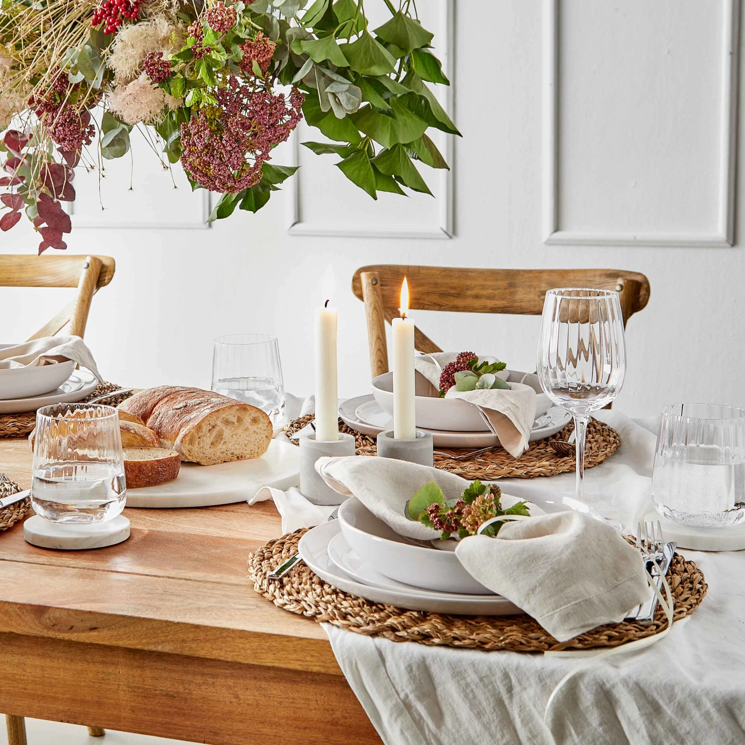 Außergewöhnliche Gläser wie das mundgeblasene Modern Times Weißweinglas 400 ml mit Rillen im 6er-Set sind der Hingucker auf dem festlich gedeckten Tisch. Bei dieser neuen Glasserie von Butlers fällt vor allem die außergewöhnlich blumige Form ins Auge, sie wirkt edel und elegant. Was Ihnen beim Tisch decken außerdem auffallen wird: Das Trinkglas lässt sich vielseitig kombinieren und fügt sich harmonisch in die verschiedensten Tischdekos ein. Passend dazu sind ein Wasserglas, ein Rotweinglas und eine Champagnerflöte erhältlich.