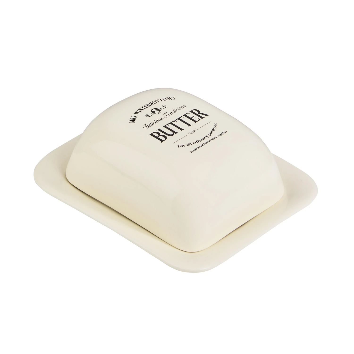 Die Butterdose: Traditioneller geht es kaum. In schlichtem Creme-Weiß und mit einem Hauch von Vintage Flair steht die Dose aus Dolomit unserer Mrs. Winterbottom’s Serie klassisch auf dem Frühstückstisch zu frischen Brötchen, duftendem Kaffee, Marmelade, Aufstrich und Orangensaft. Auf dem gedeckten Tisch darf die Aufbewahrungsdose nicht fehlen und bietet sich mit ihrer abgerundeten Form und dem passenden Deckel auch als schönes Accessoire in Küche und Esszimmer an.