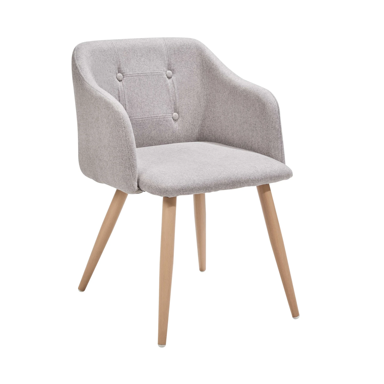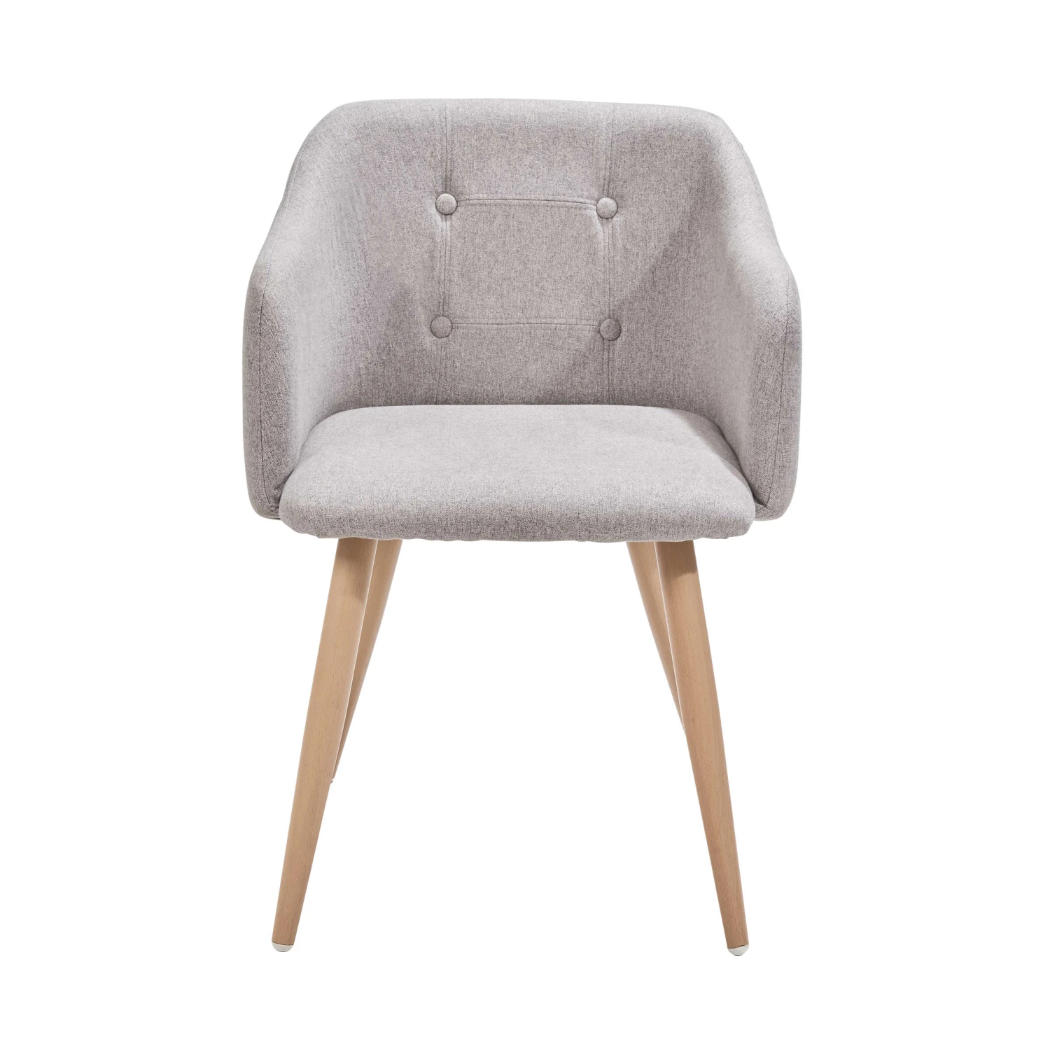 Bequemes Sitzen und stylisches Design in einem: Alles passt perfekt beim Rock ’n‘ Soul-Stuhl im 2er-Set. Vom pflegeleichten grauen Filzbezug auf dem gepolsterten Sitz über die komfortablen Armlehnen und Knöpfe in der Rückenlehne bis zu den nach unten hin zulaufenden Metallbeinen in Holz-Optik. Mit einem dekorativen Kissen oder einem weichen Lammfell verpassen Sie dieser Sitzgelegenheit zudem einen individuellen Look. Sowohl für das Ess- als auch das Wohn- oder Schlafzimmer ideal.