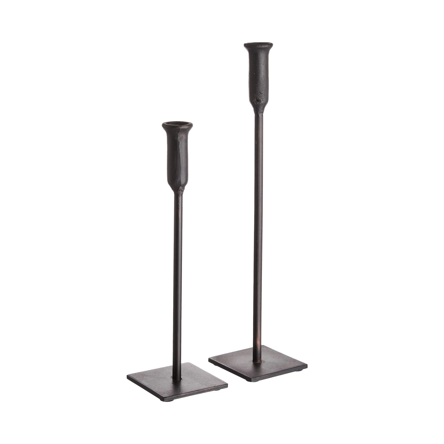 Eine spezielle Veredelung unterstreicht die herbe Schönheit des Eisens: Beim schlanken 2-teiligen Rust Kerzenhalter-Set sorgt Edelrost für den authentischen Look. Dazu passen das fast mittelalterliche Design und die Verarbeitung im kunsthandwerklichen Stil – wunderbar in Kombination mit Holz, Leinen, Stein und anderen naturverbundenen Materialien.