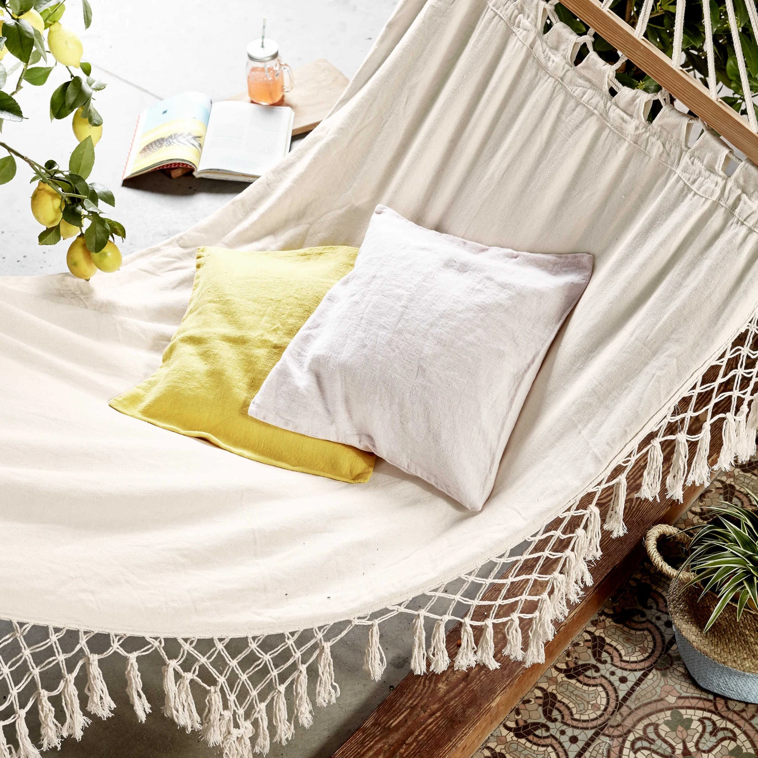 In der Show Me Heaven Hängematte in Creme mit Troddeln lassen Sie ganz gechillt die Seele baumeln. Bei einem guten Buch und einem kalten Getränk in der Sonne. Bei lachenden Kindern im Garten und Schmetterlingen, die durch den Sommerhimmel flattern.