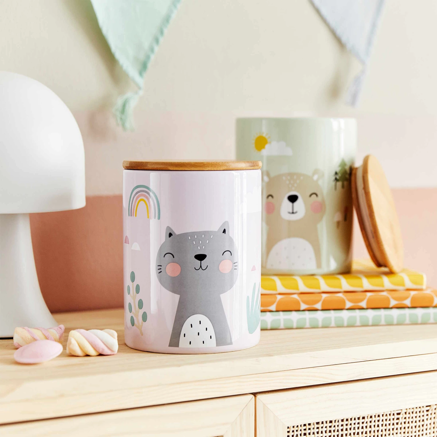 Bastelsachen, Schlüssel, kleine Schmuckstücke und alle möglichen Fundstücke sind in der Tiny Town Aufbewahrungsdose Kinder Katze bestens aufgehoben. Dank Silikondichtung schließt der Deckel der hübsch dekorierten Dose besonders dicht, so dass auch nichts herausfällt, wenn die Dose mal mit Schwung durch das Kinderzimmer getragen wird. Optisch kann sich die Dose übrigens gut auf dem Nachttisch, dem Schreibtisch oder einer Kommode sehen lassen und verschönert dort das Kinderzimmer.